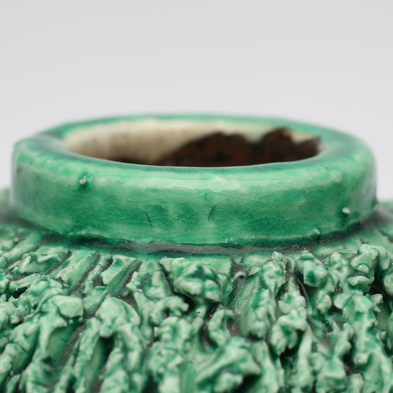 Ytslitage. Smärre glasyrbortfall. Krackelering vid mynning.