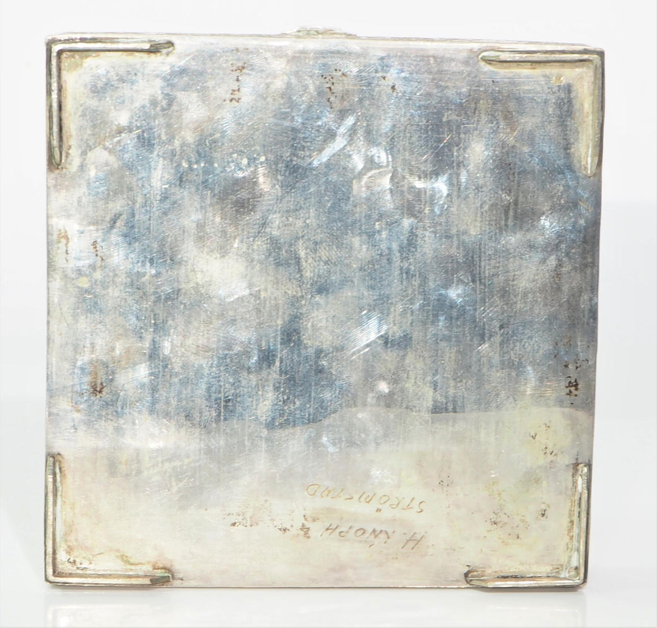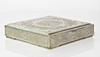 12 x 12 cm, höjd 2,5 cm. Vikt 348 gram.