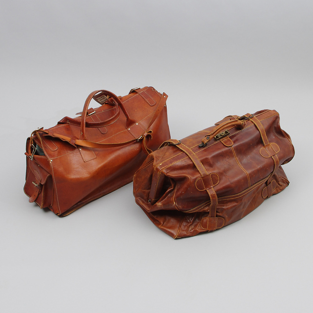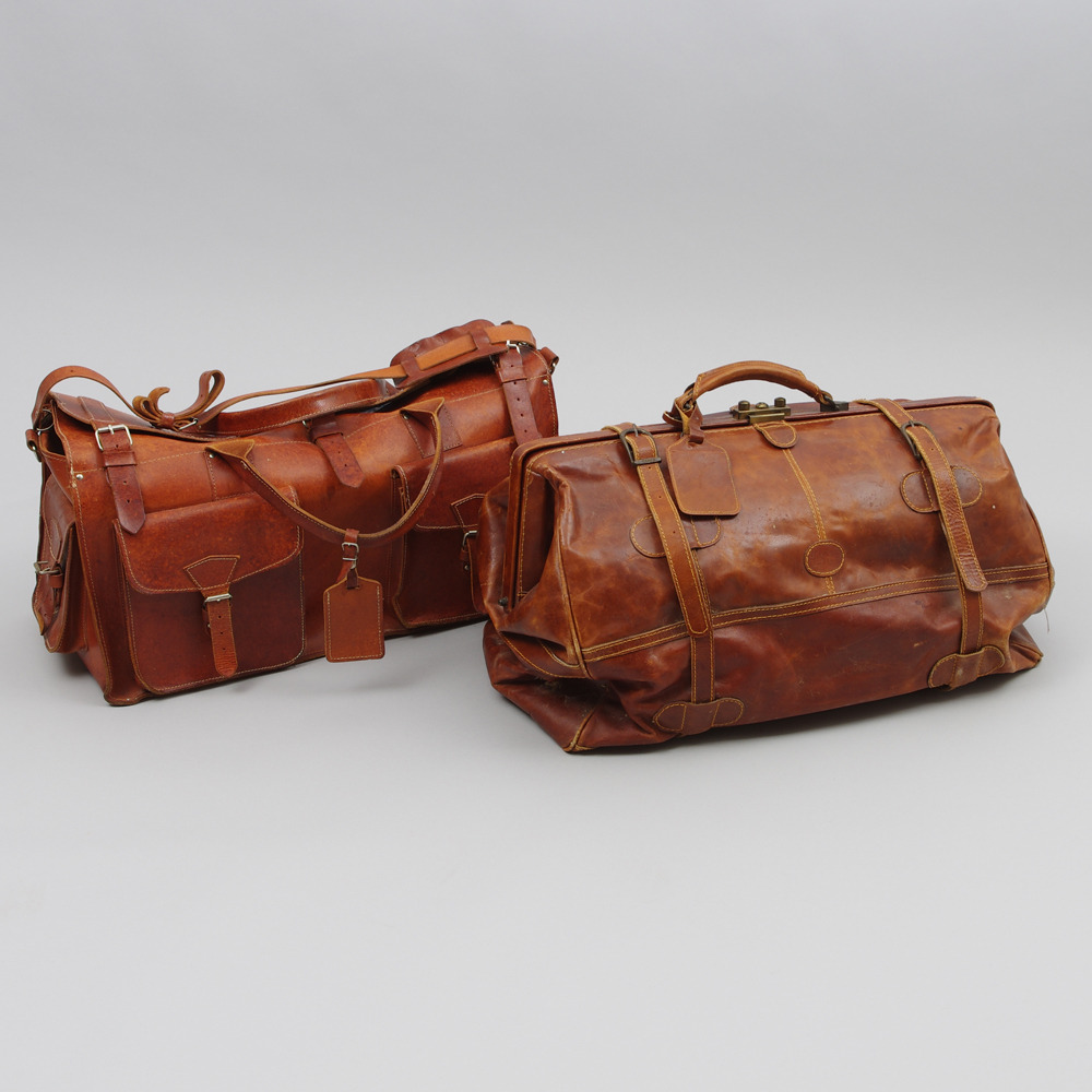 164743. WEEKENDVÄSKOR, 2 stycken, brunt skinn.