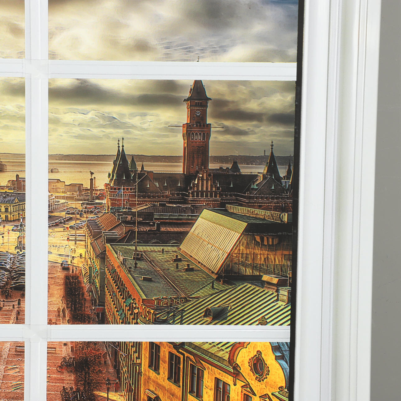 TAVLA, utsikt över Helsingborg, tryck på duk.