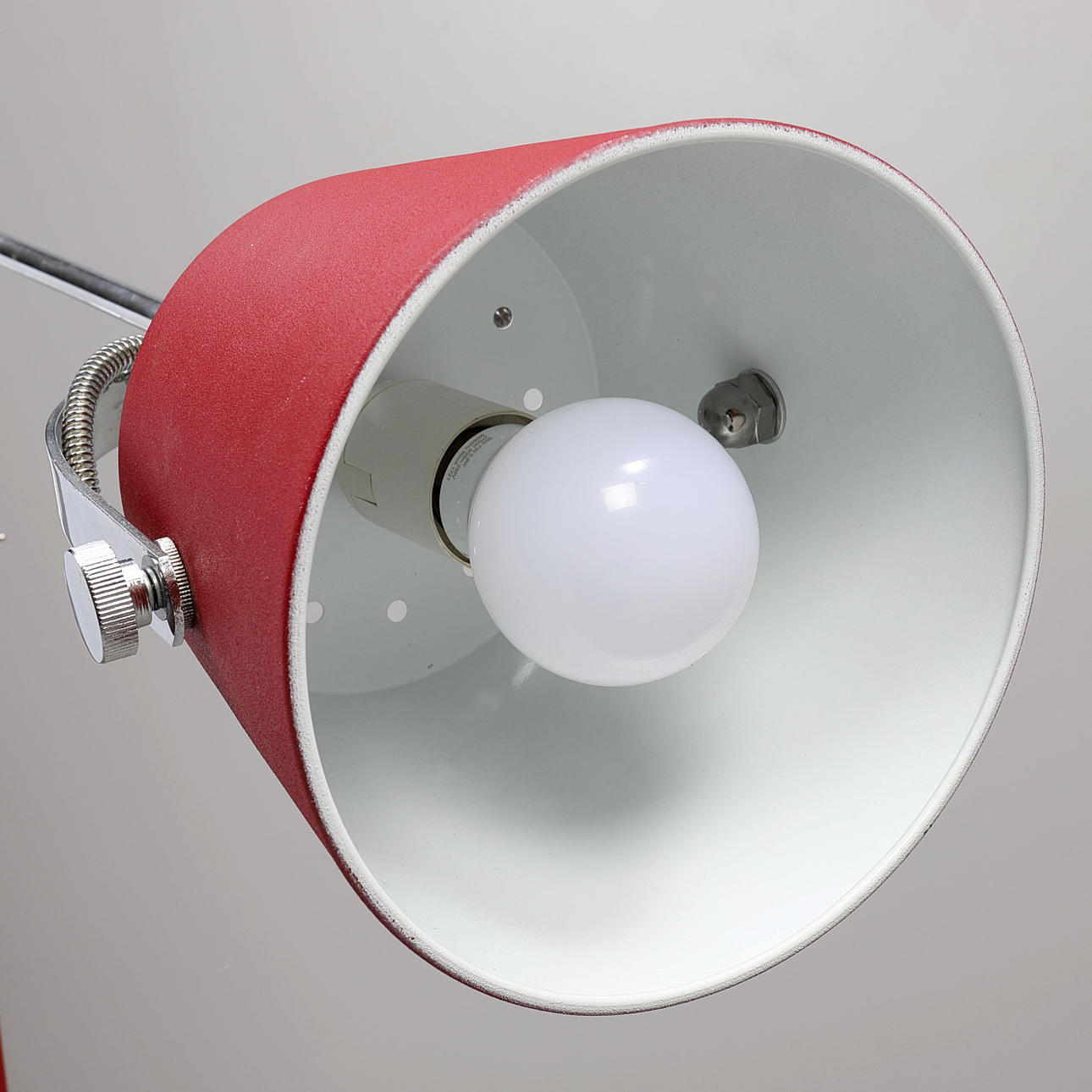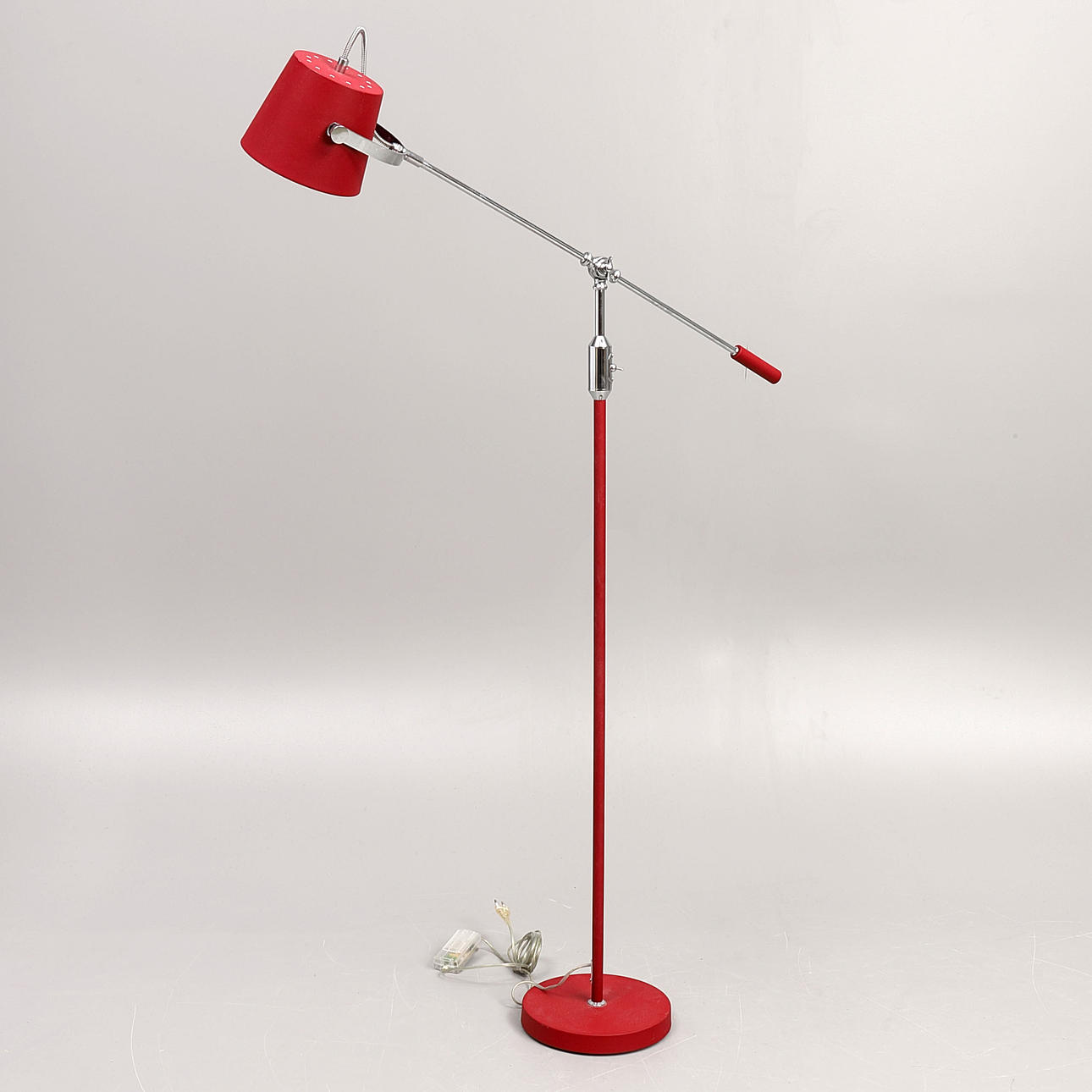 krom med rödlackerad skärm, höjd 129 cm.