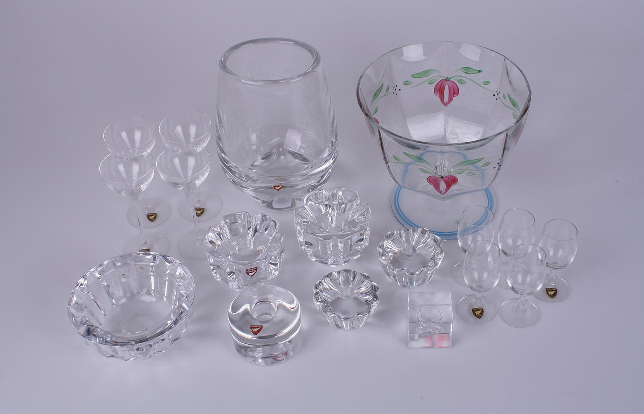 GLASFÖREMÅL, 18 st, Orrefors.