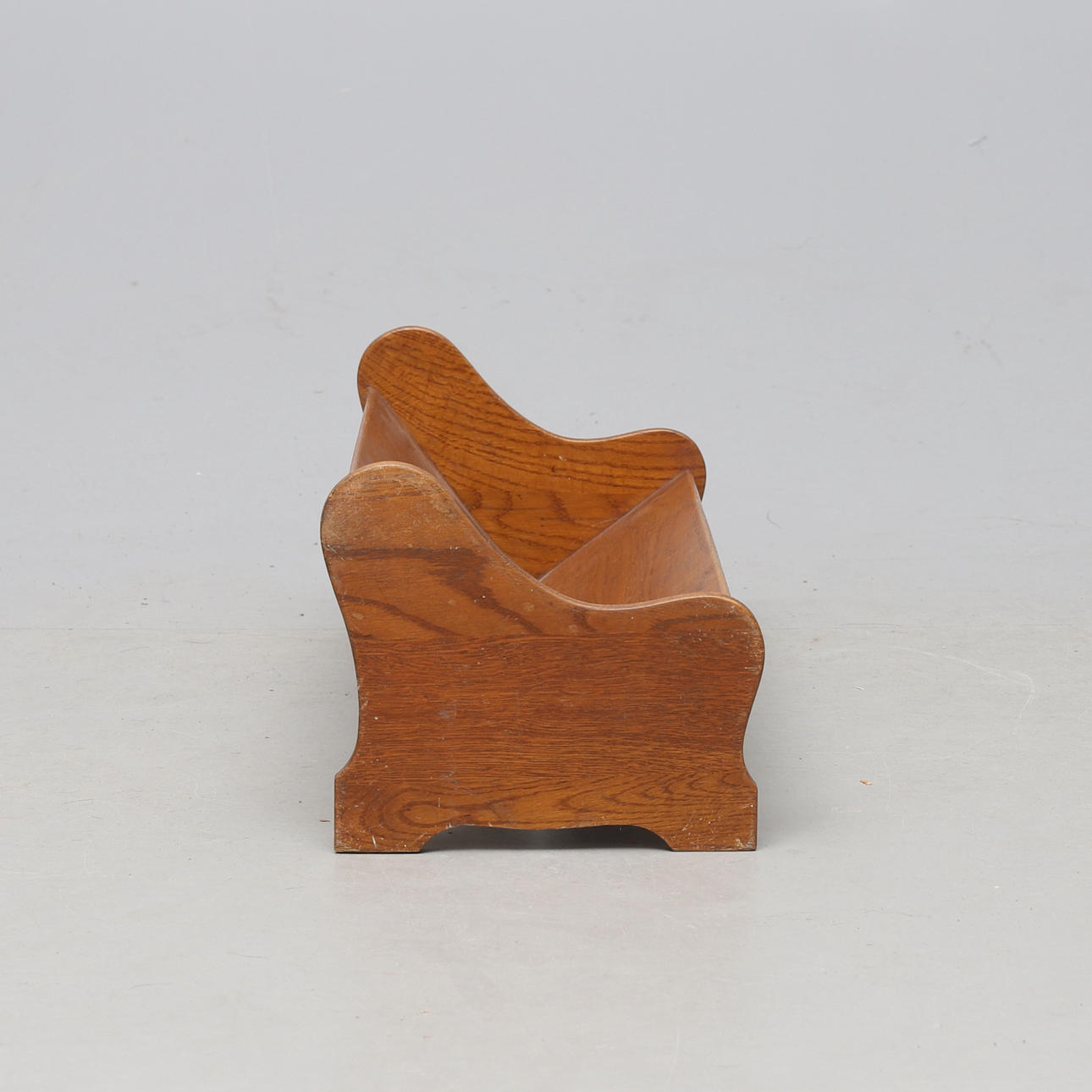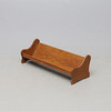 Fanerad med ek. Skuren dekor. Längd 67,5. Bredd 24. Höjd 21 cm.