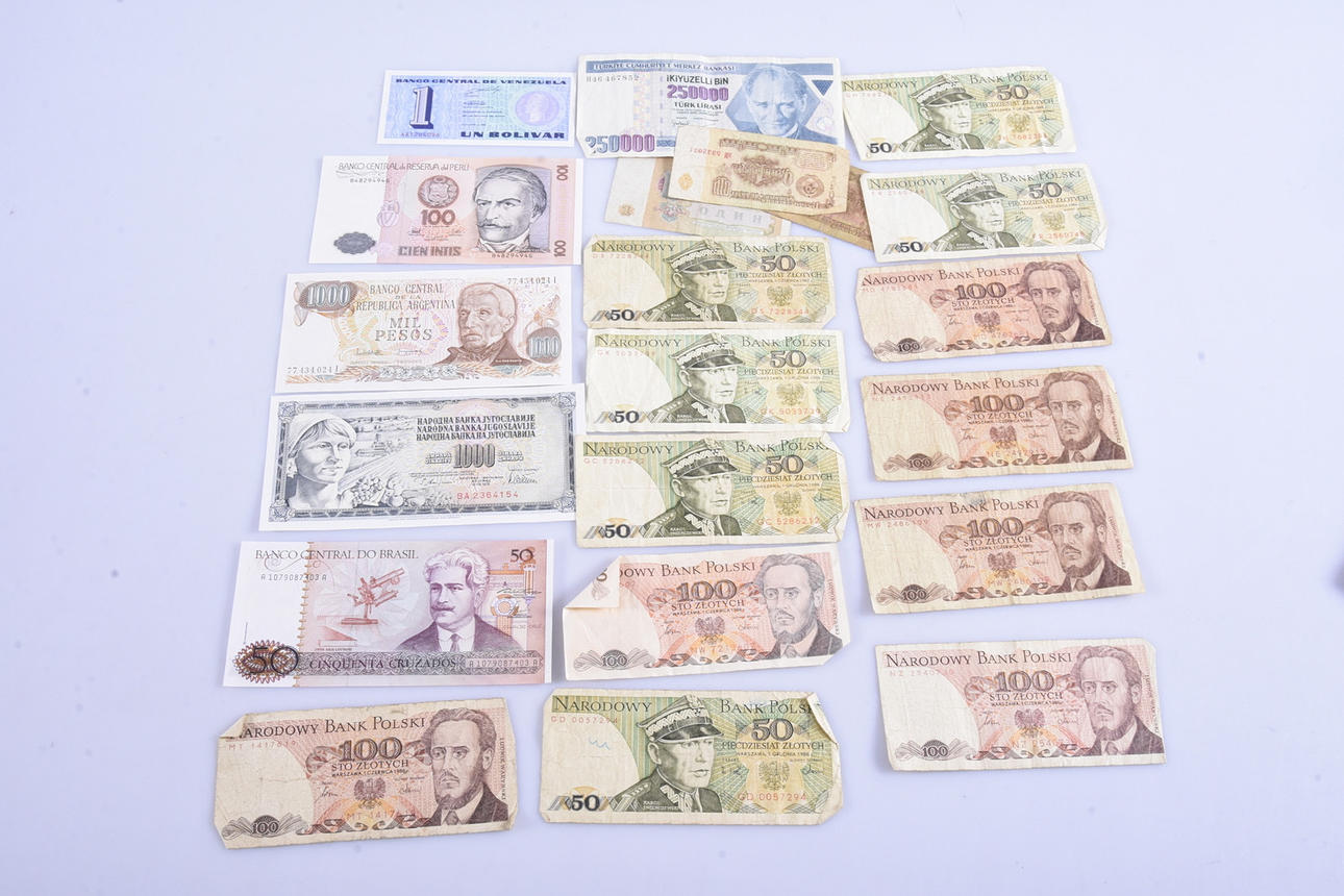 PARTI UTLÄNDSKA SEDLAR, 100 stycken.