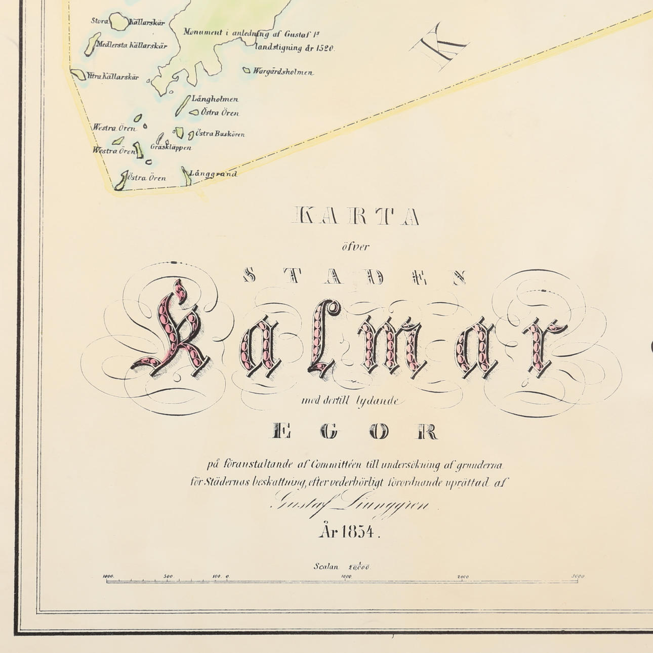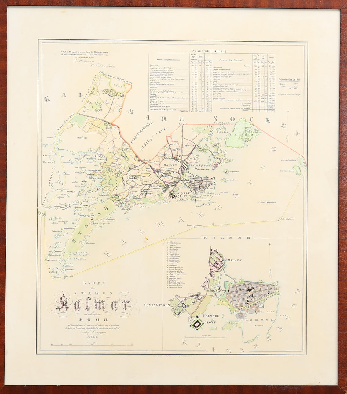 STADSKARTA, Kalmar, 1854.