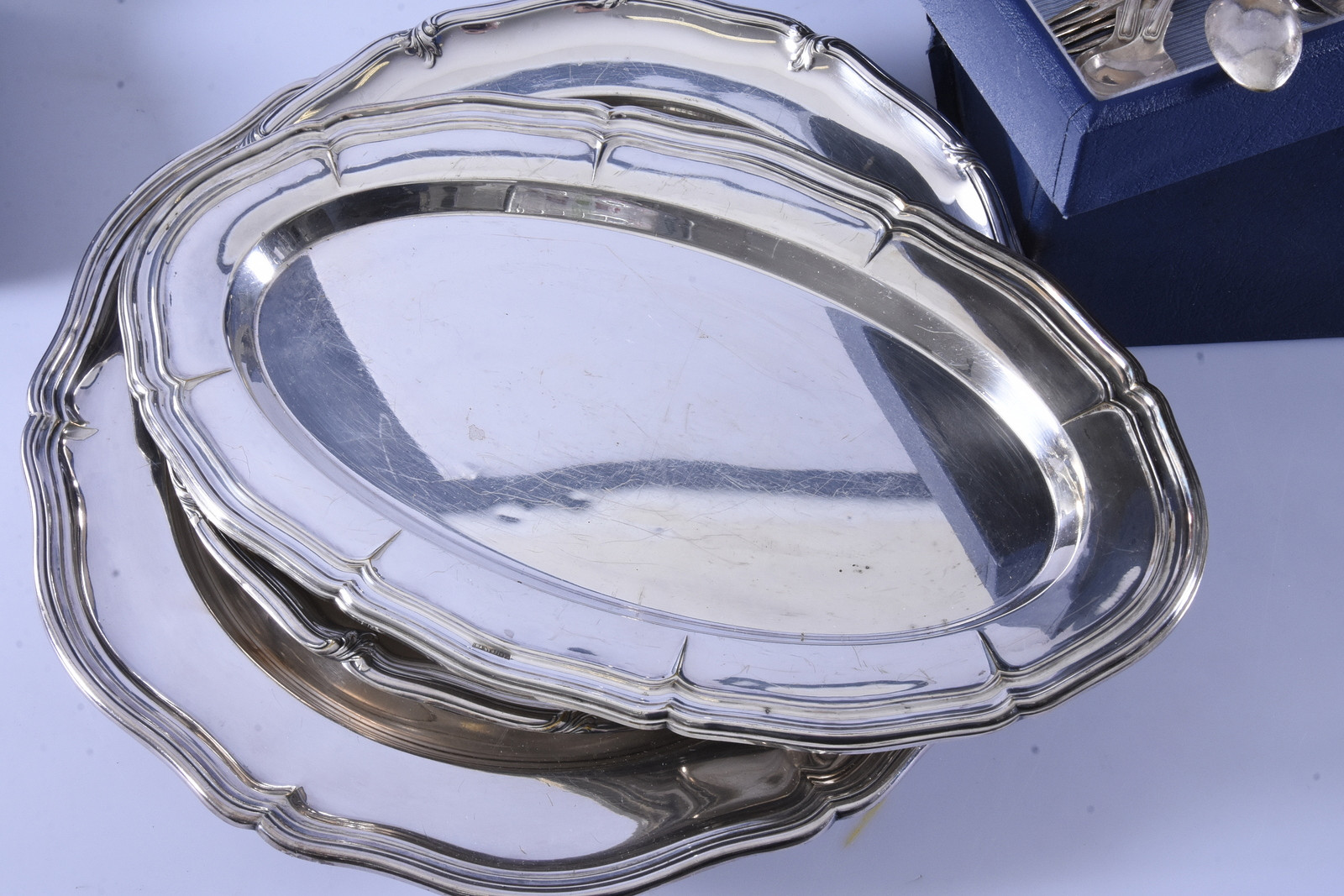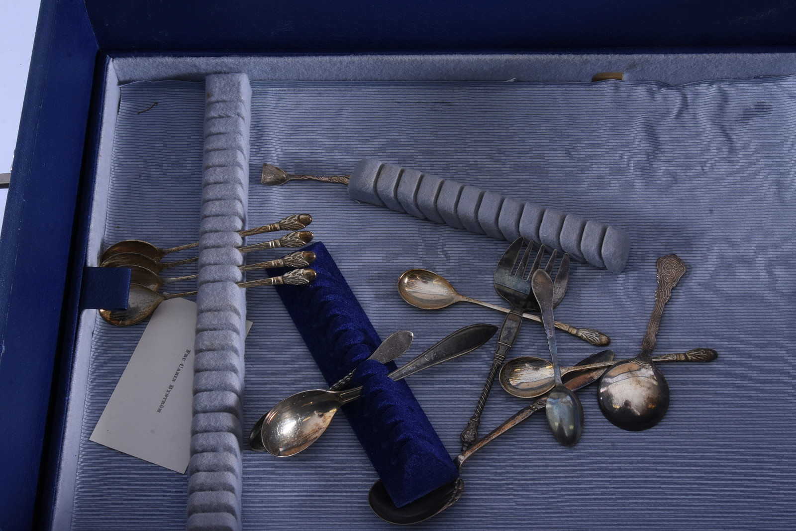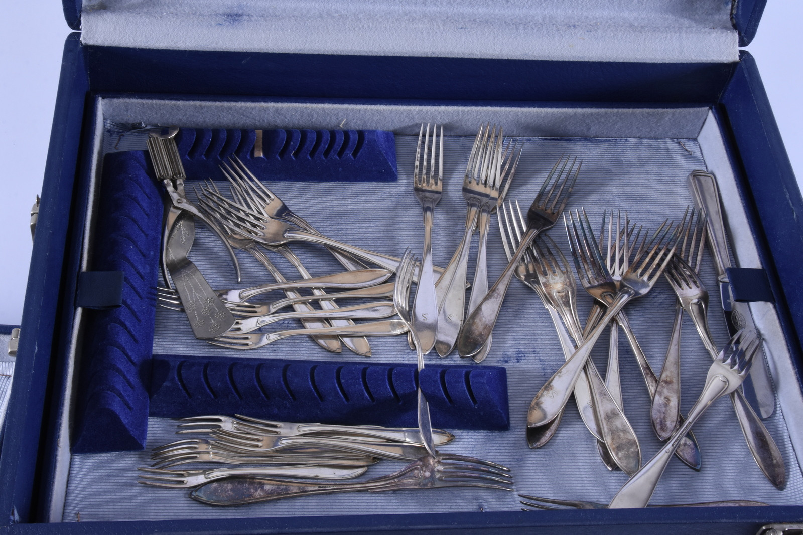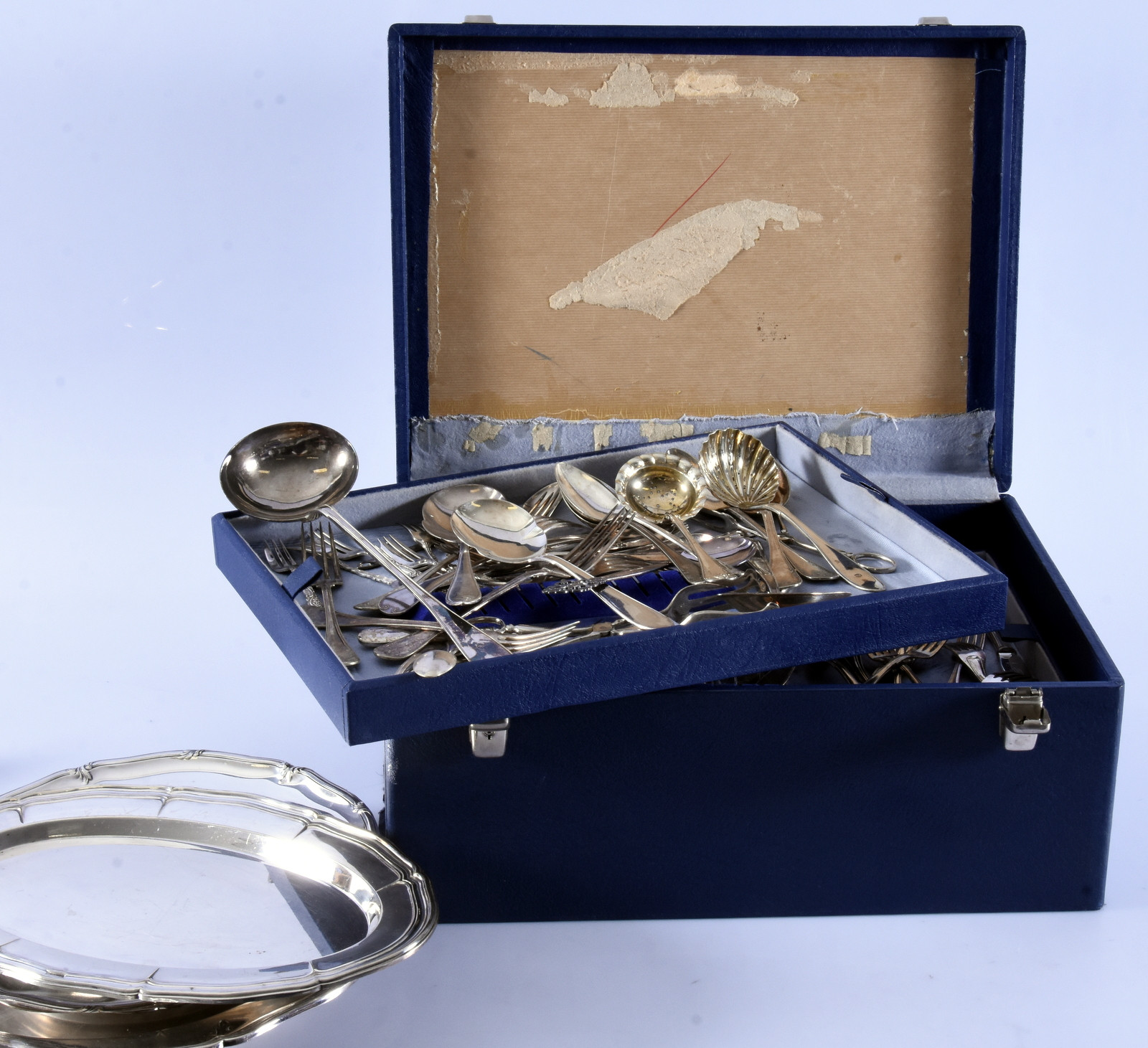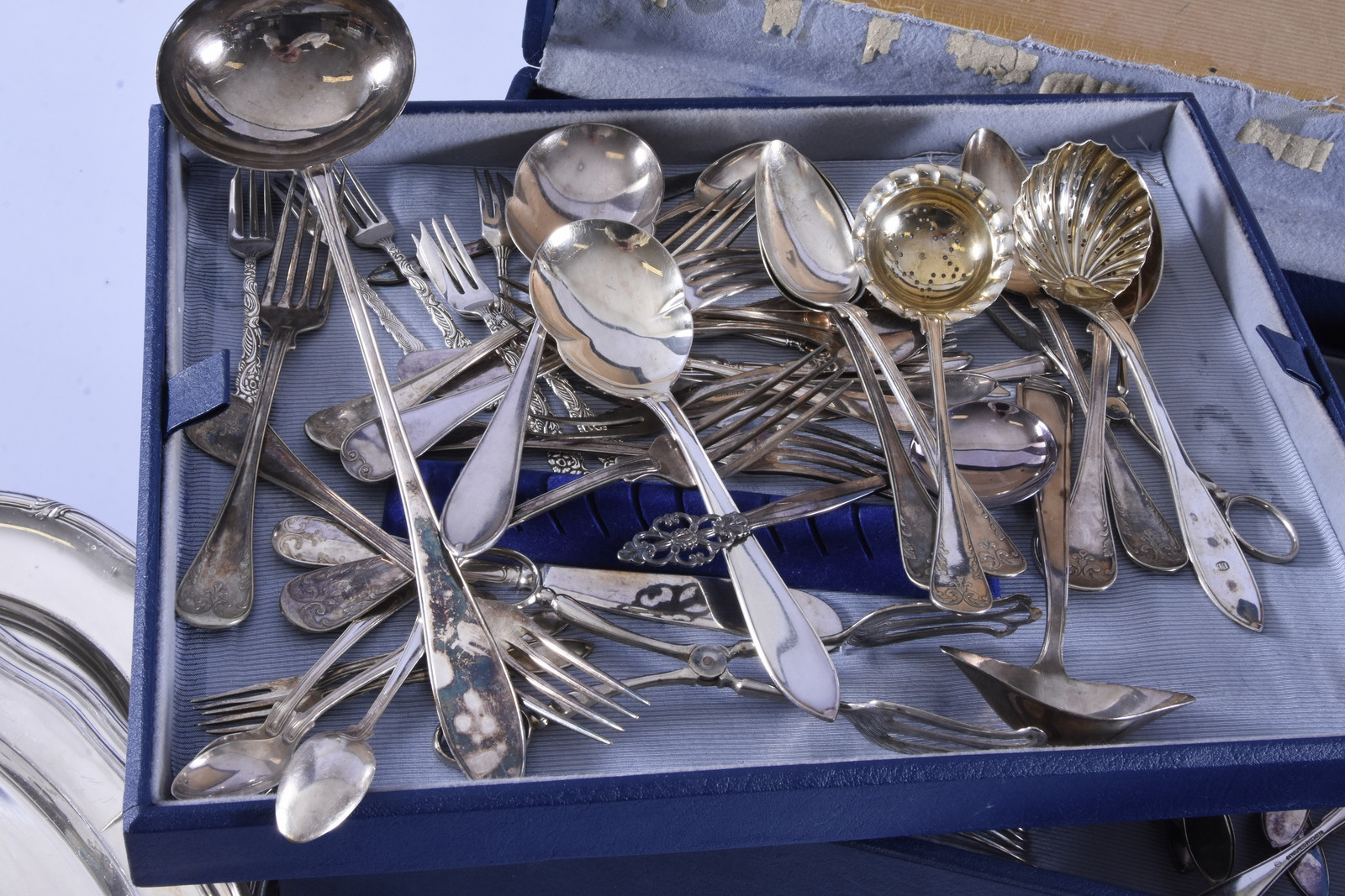 1663280. STORT PARTI NYSILVERFÖREMÅL SAMT BESTICKSSCHATULL.