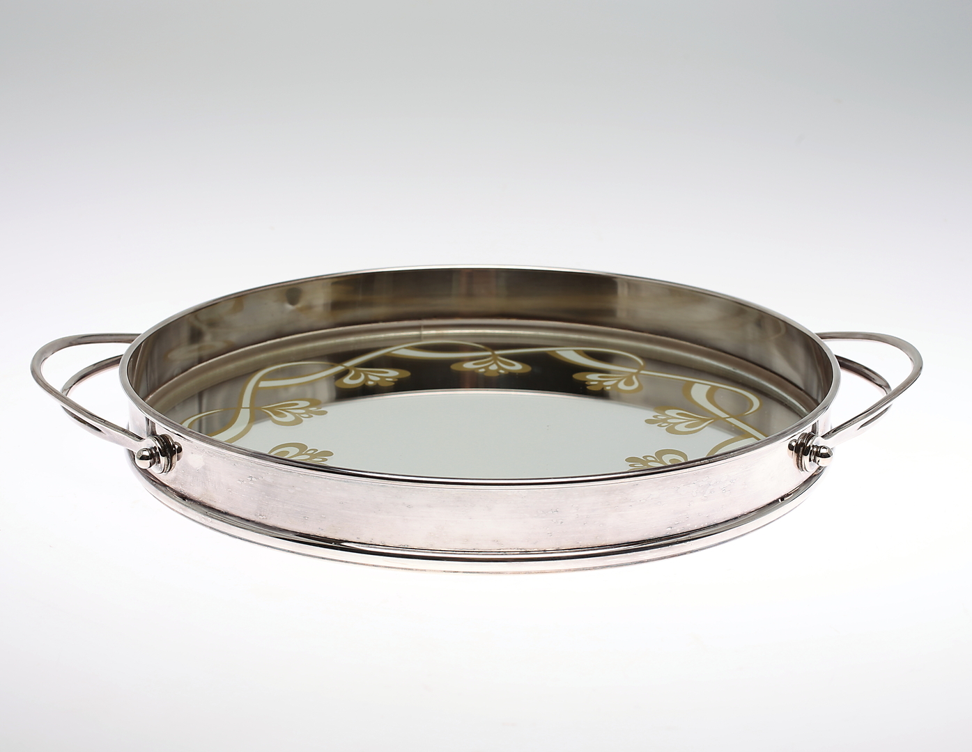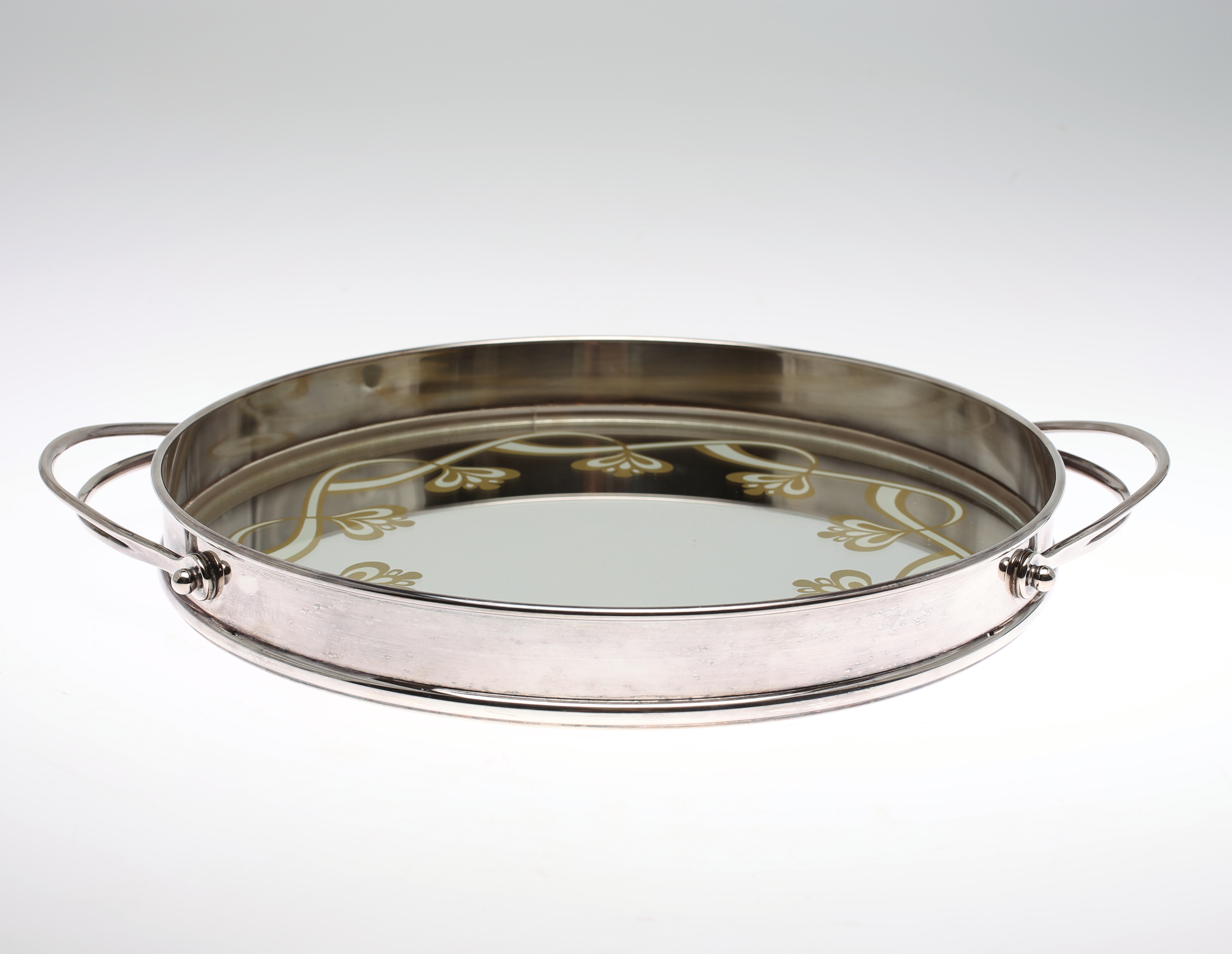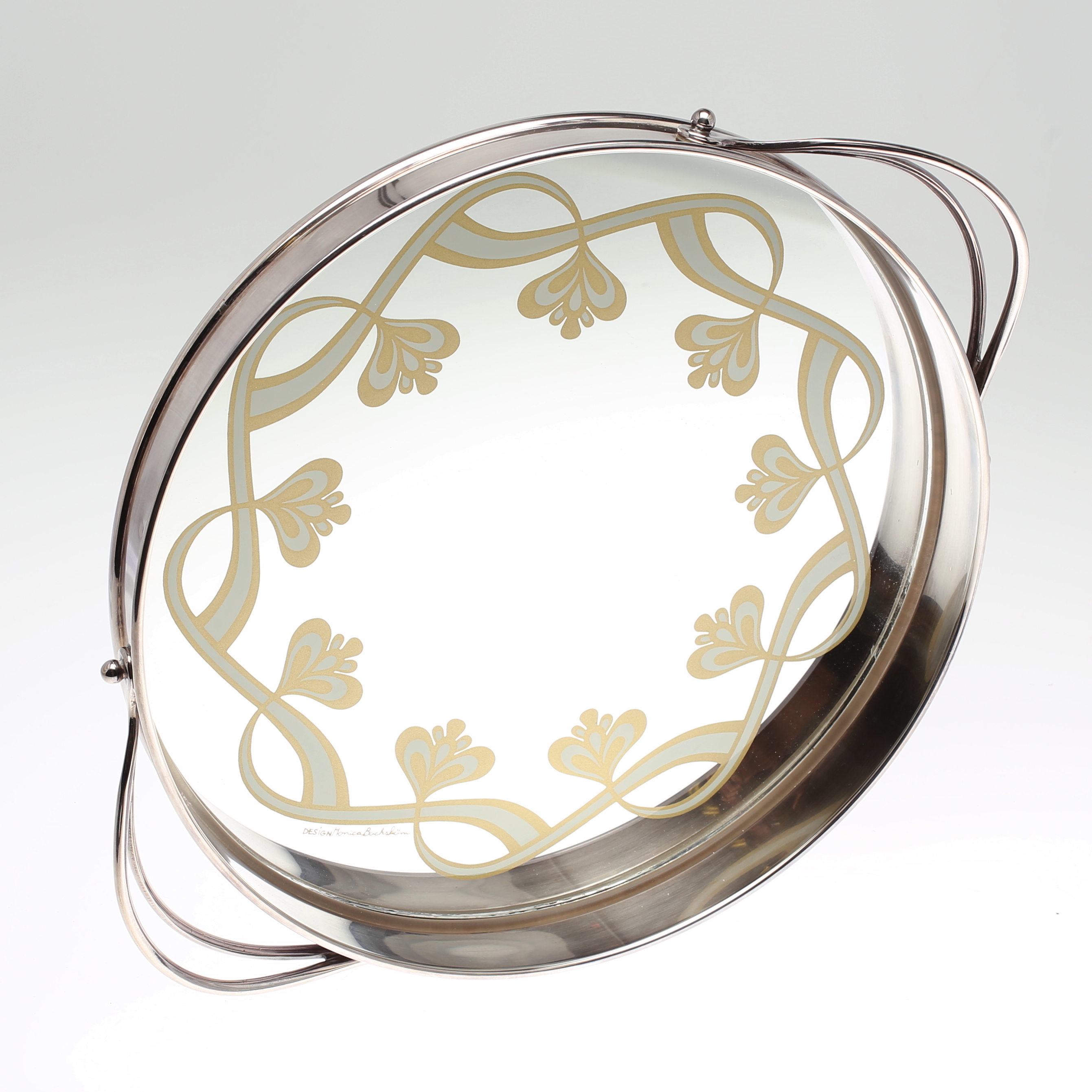 166449. MONICA BACKSTRÖM. BRICKA, nysilver/spegelglas.