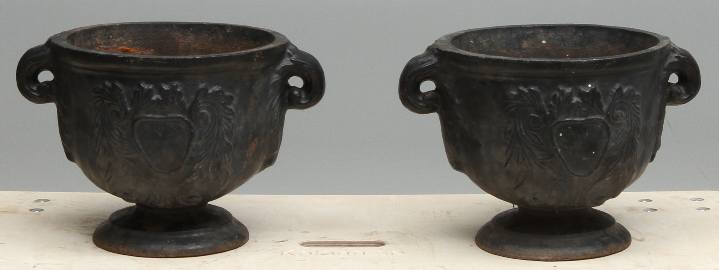 16686. TRÄDGÅRDSURNOR, 1 par, gjutjärn.