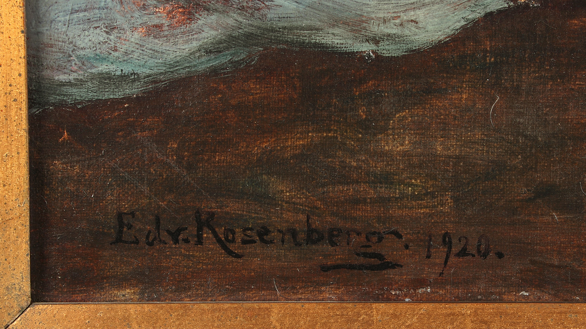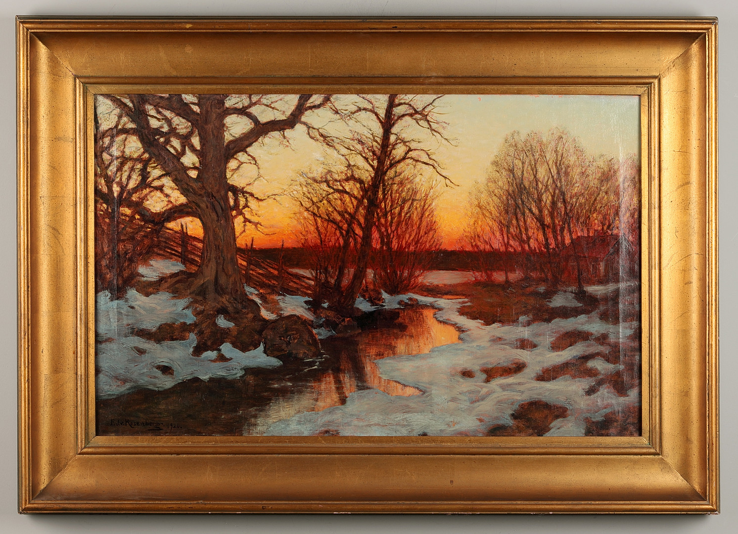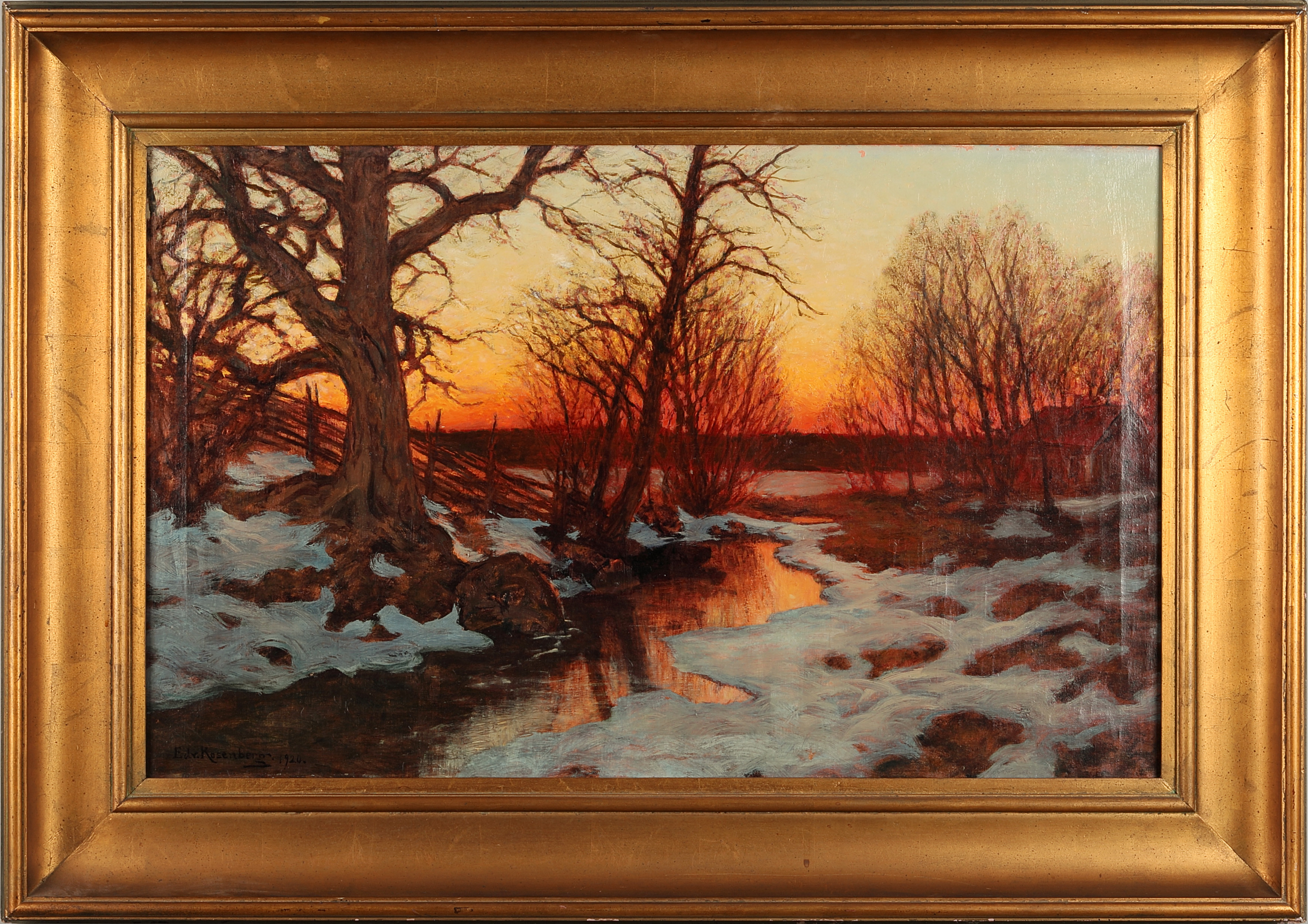 1670388. EDVARD ROSENBERG (1858-1934):. Solnedgåmg i Vinterlandskap.
