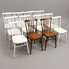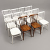 10 st vitmålade, 2 st brunbetsade med annat benavslut, Lamhults stol- och snickerifabrik, sitthöjd 45,5
