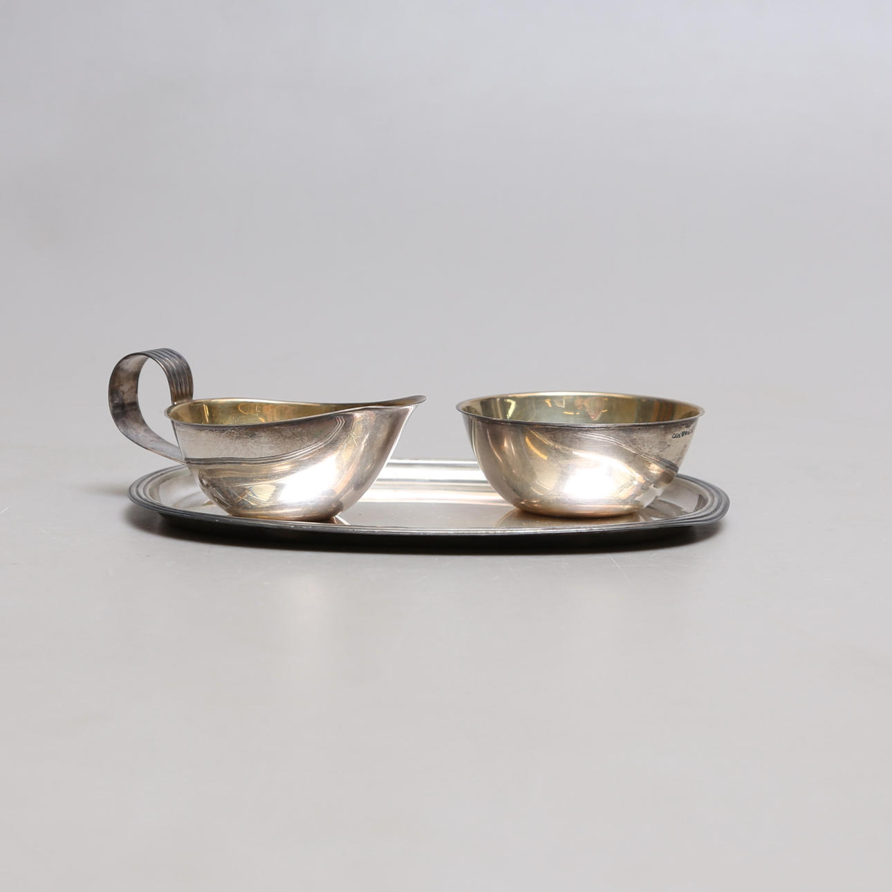 Gräddsnipa, skål, liten bricka. Bricka, vidd 17,5cm.