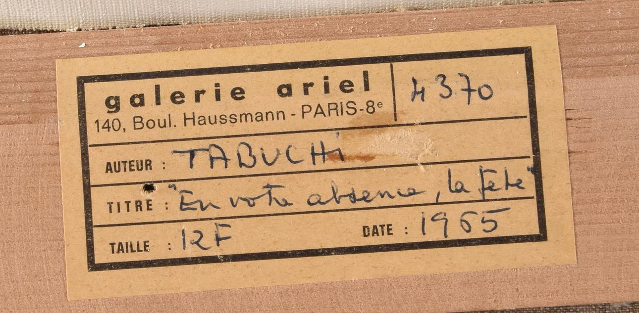 A tergo Utställningsetikett från Galerie Ariel. Paris. 50x60 cm.