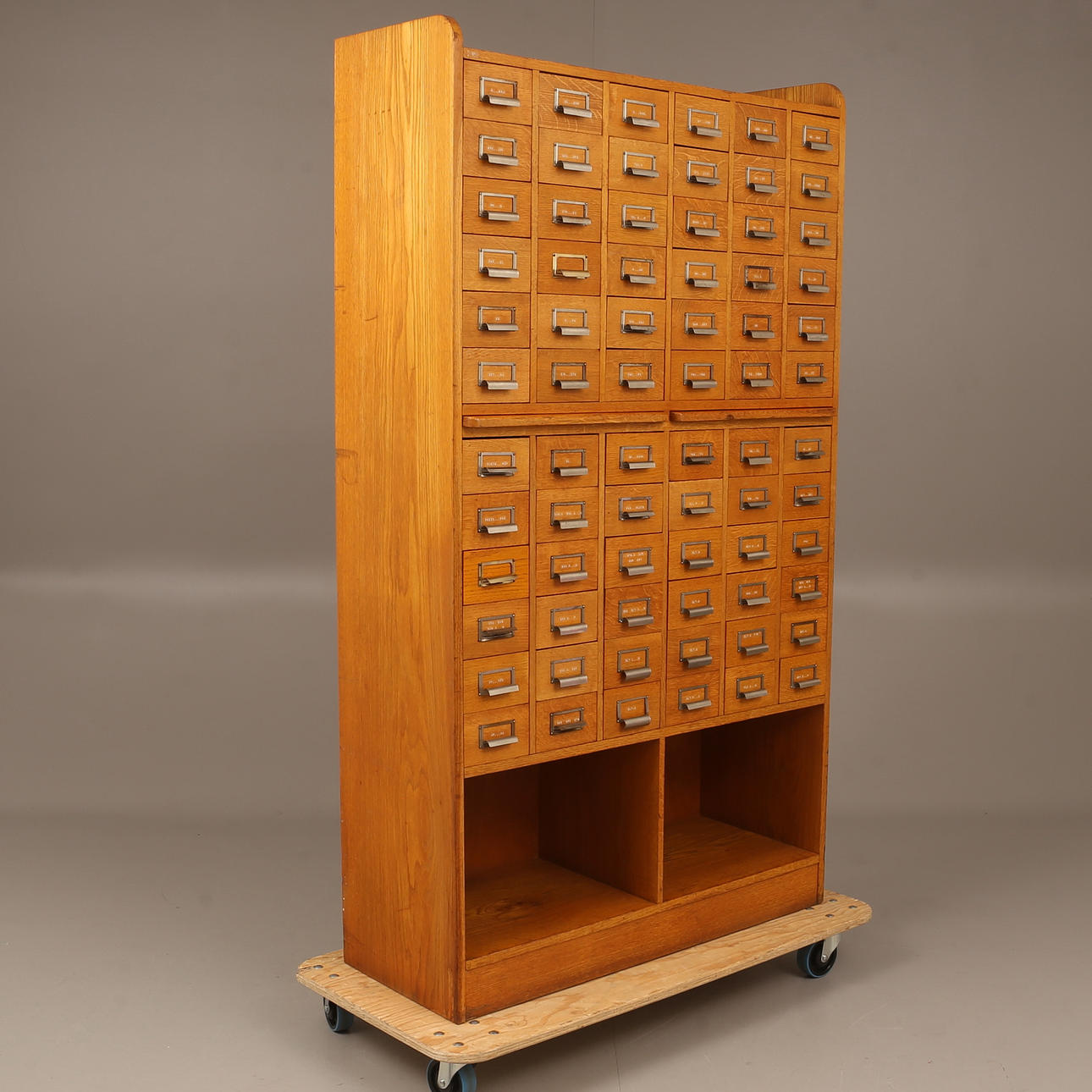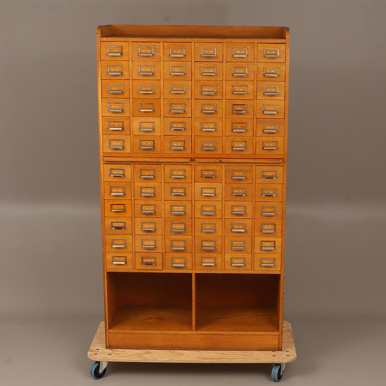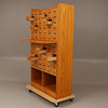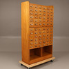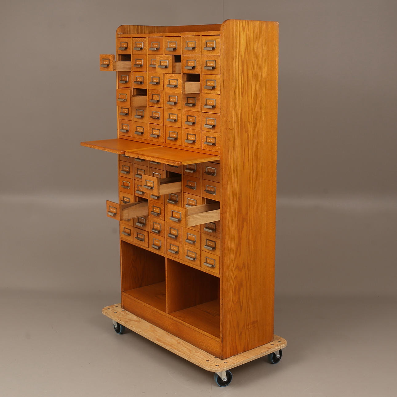 72 st lådor samt 2 st utdragbara skivor i mitten. Höjd cirka 183 cm, cirka 40 x 102 cm.