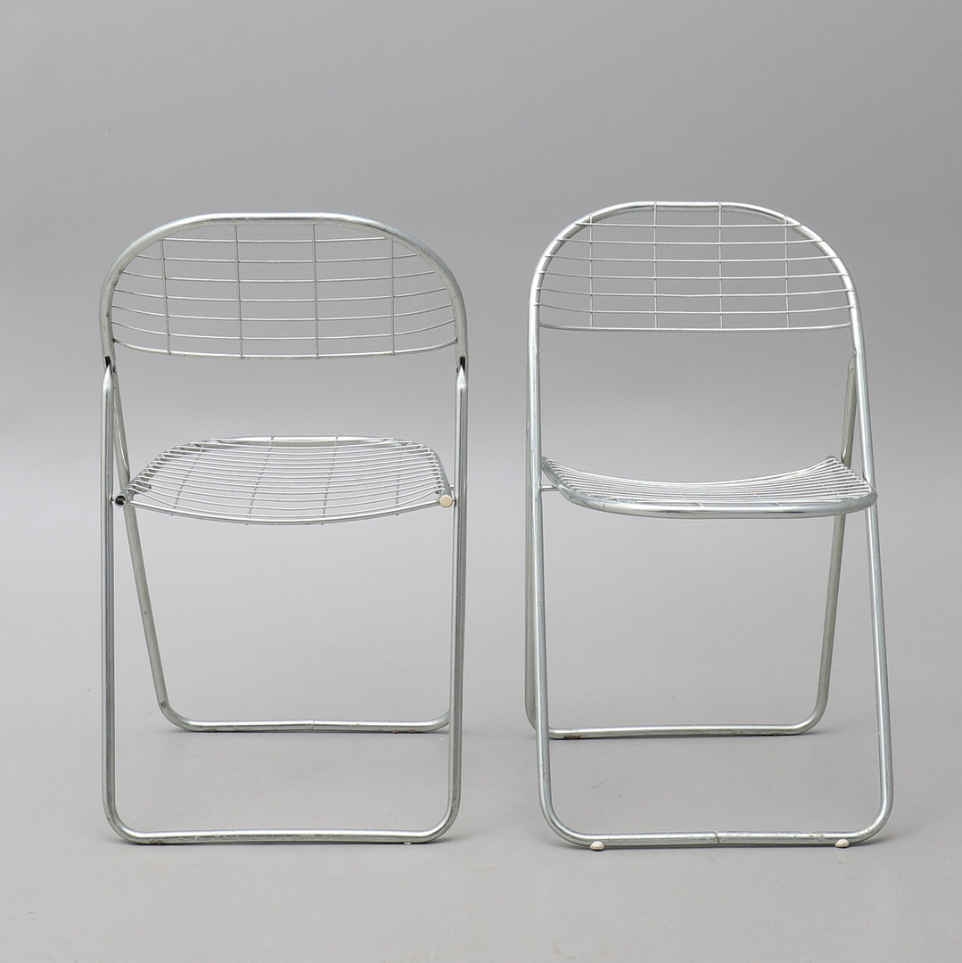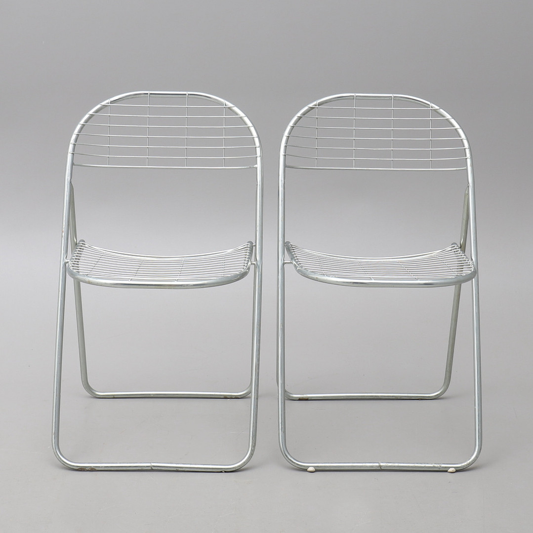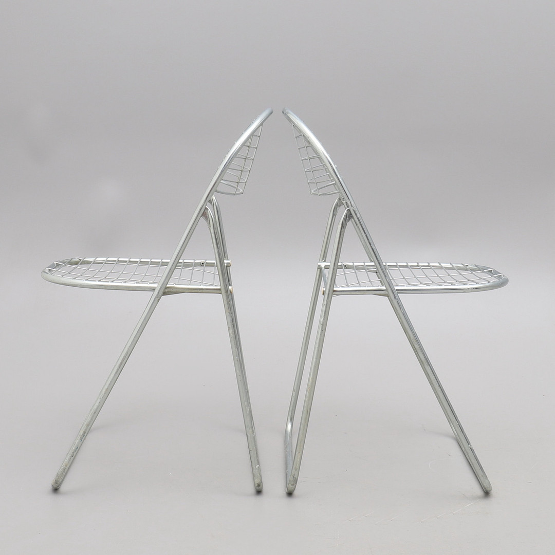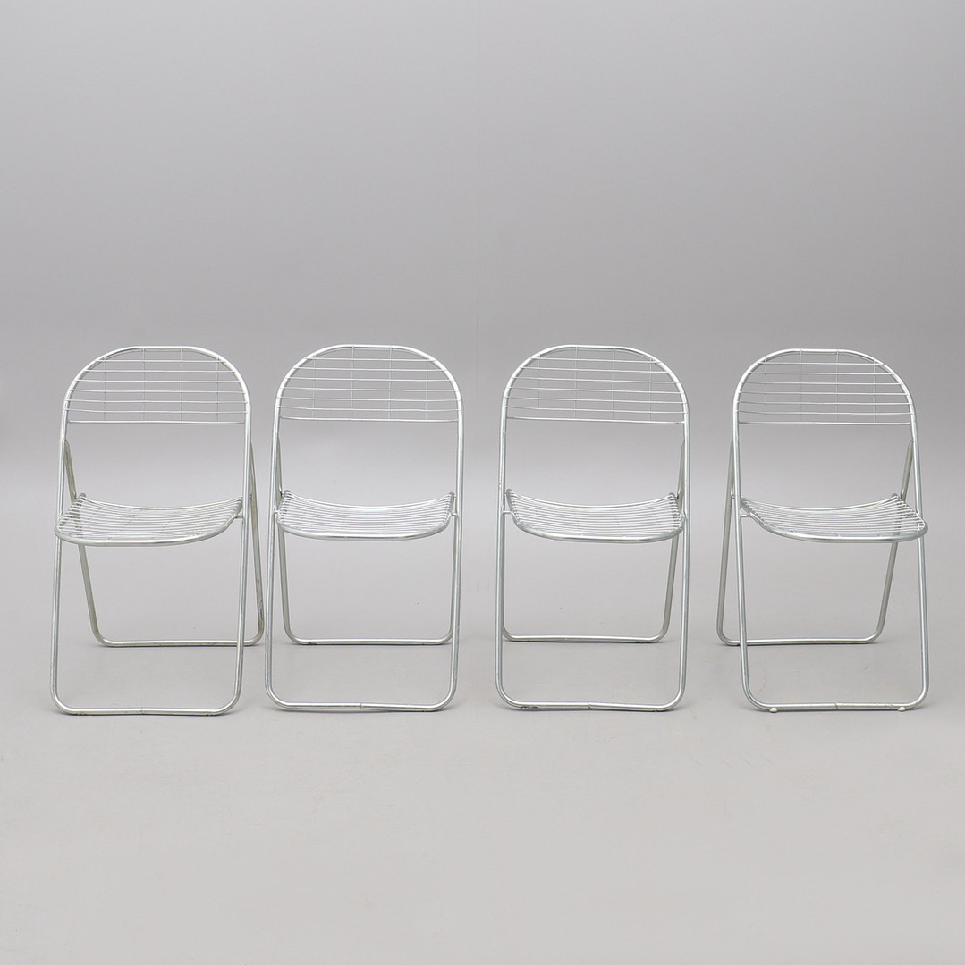 1676299. NIELS GAMMELGAARD. Fällstolar, 4 st, IKEA. Kromat metallnät.