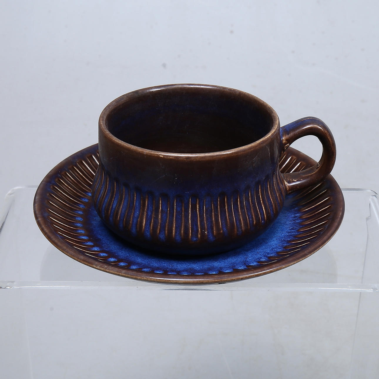 Mikronagg. En assiett och ett kaffefat med lagning. Tillverkningsdefekter. Slitage, repor.