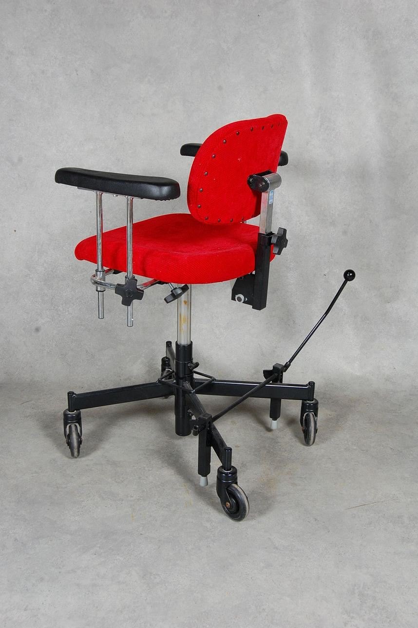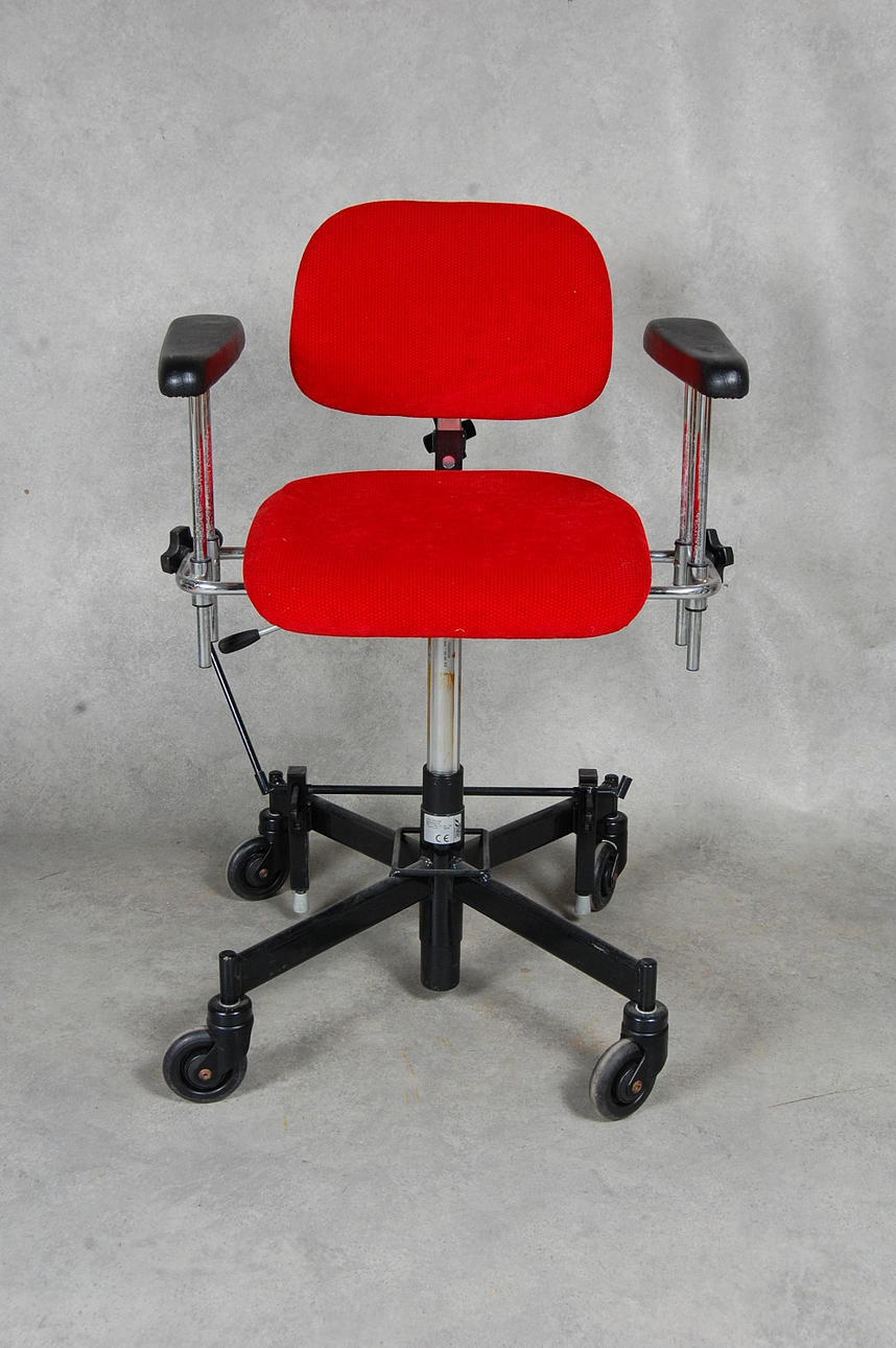 Höj, sänkbar, broms, reglerbara armstöd, rullar lätt.