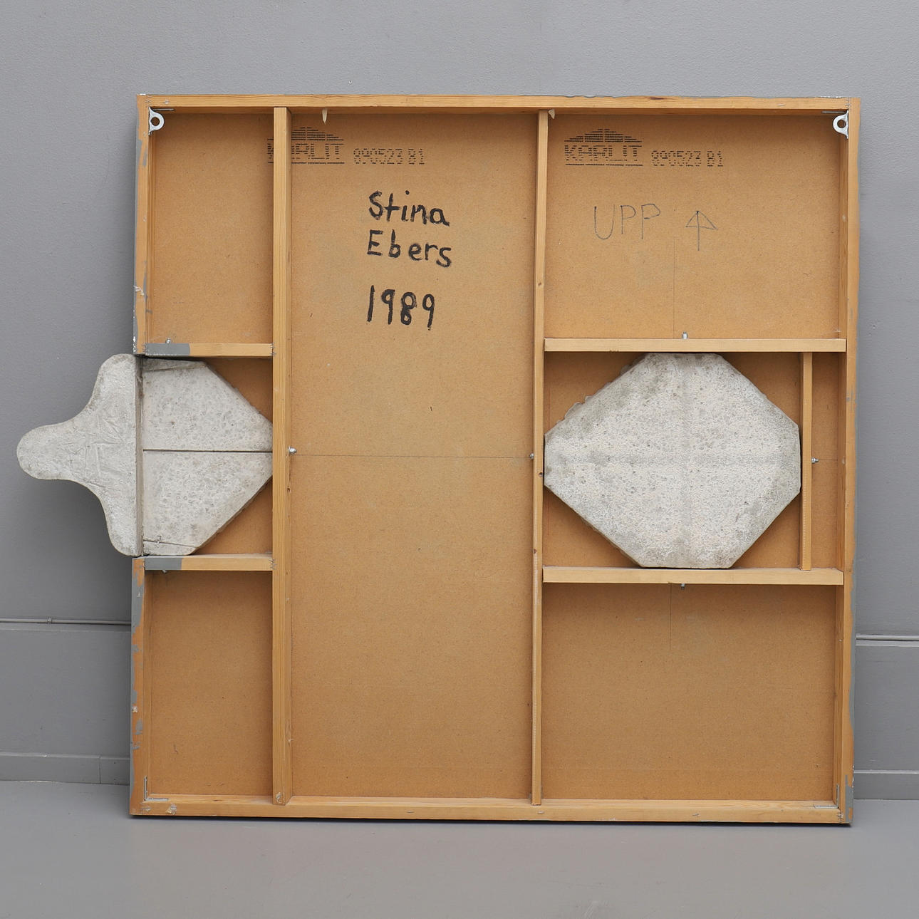 Olja på pannå med inslag av betong i relief. A tergo signerad och daterad 1989. 123x142 cm.