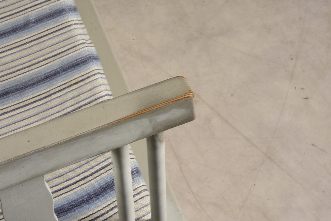 Slitage och fläckar, färgbortfall.