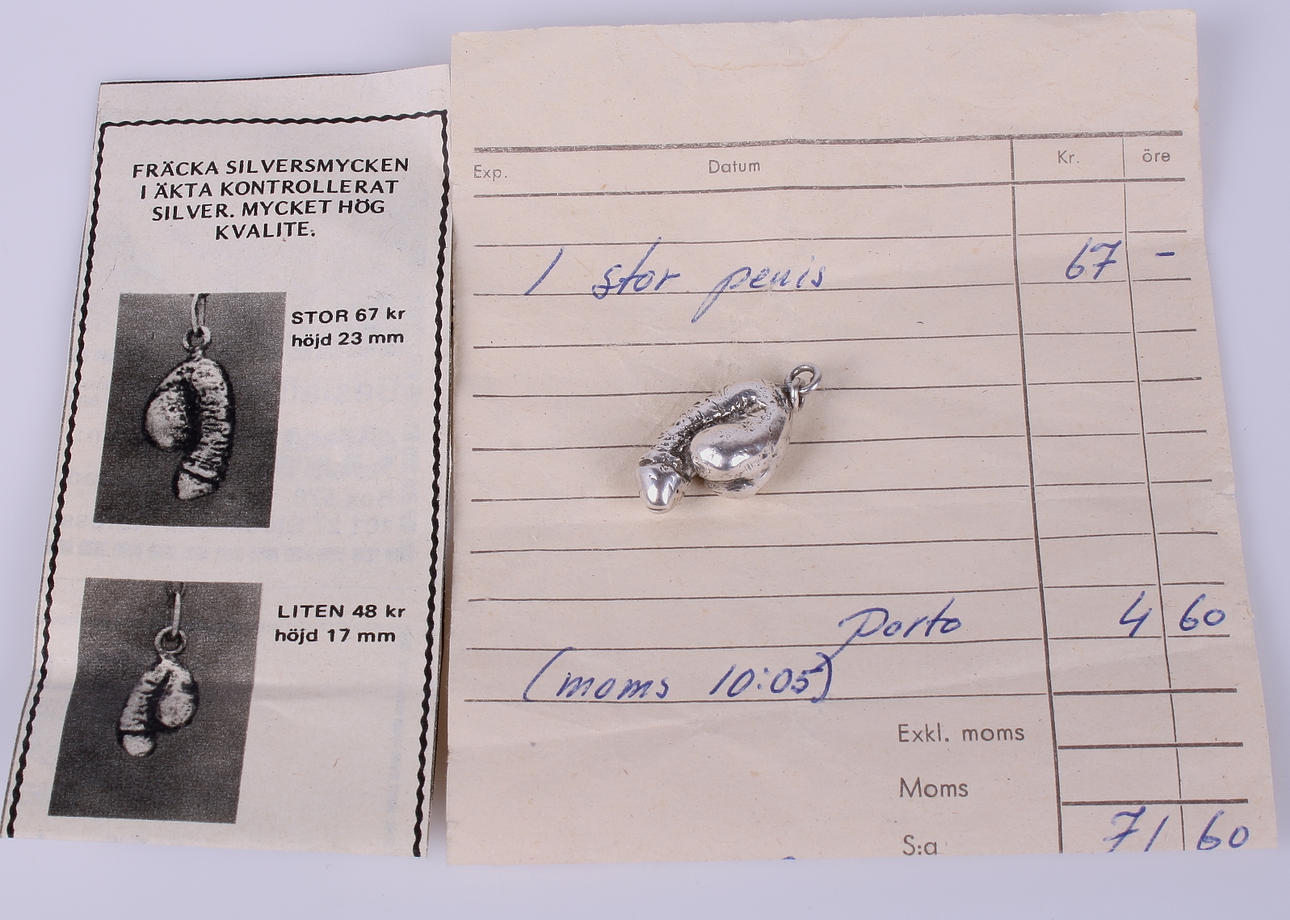 HÄNGSMYCKE, silver, "stor penis", vikt 13,1 gram.