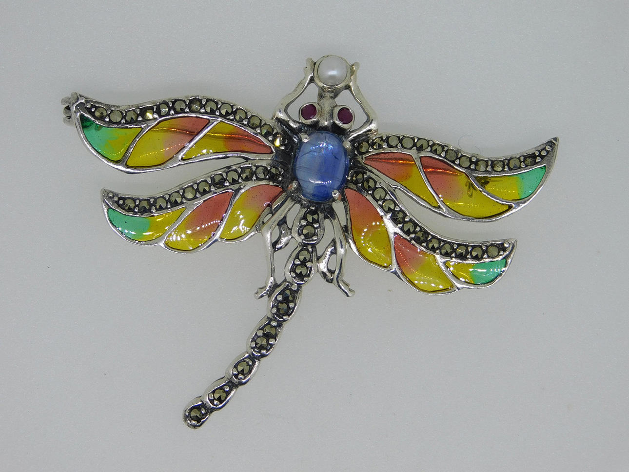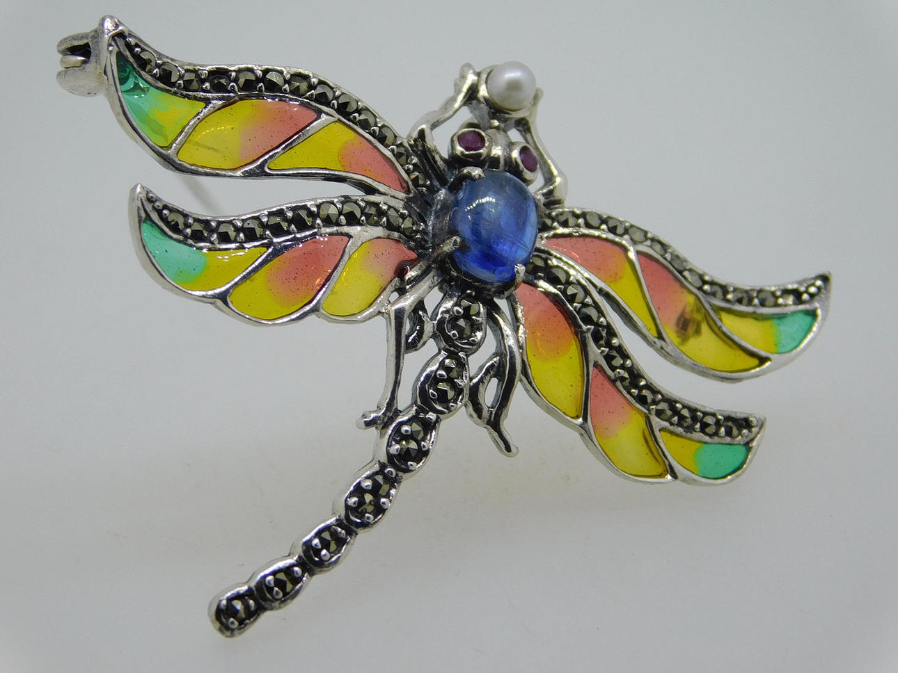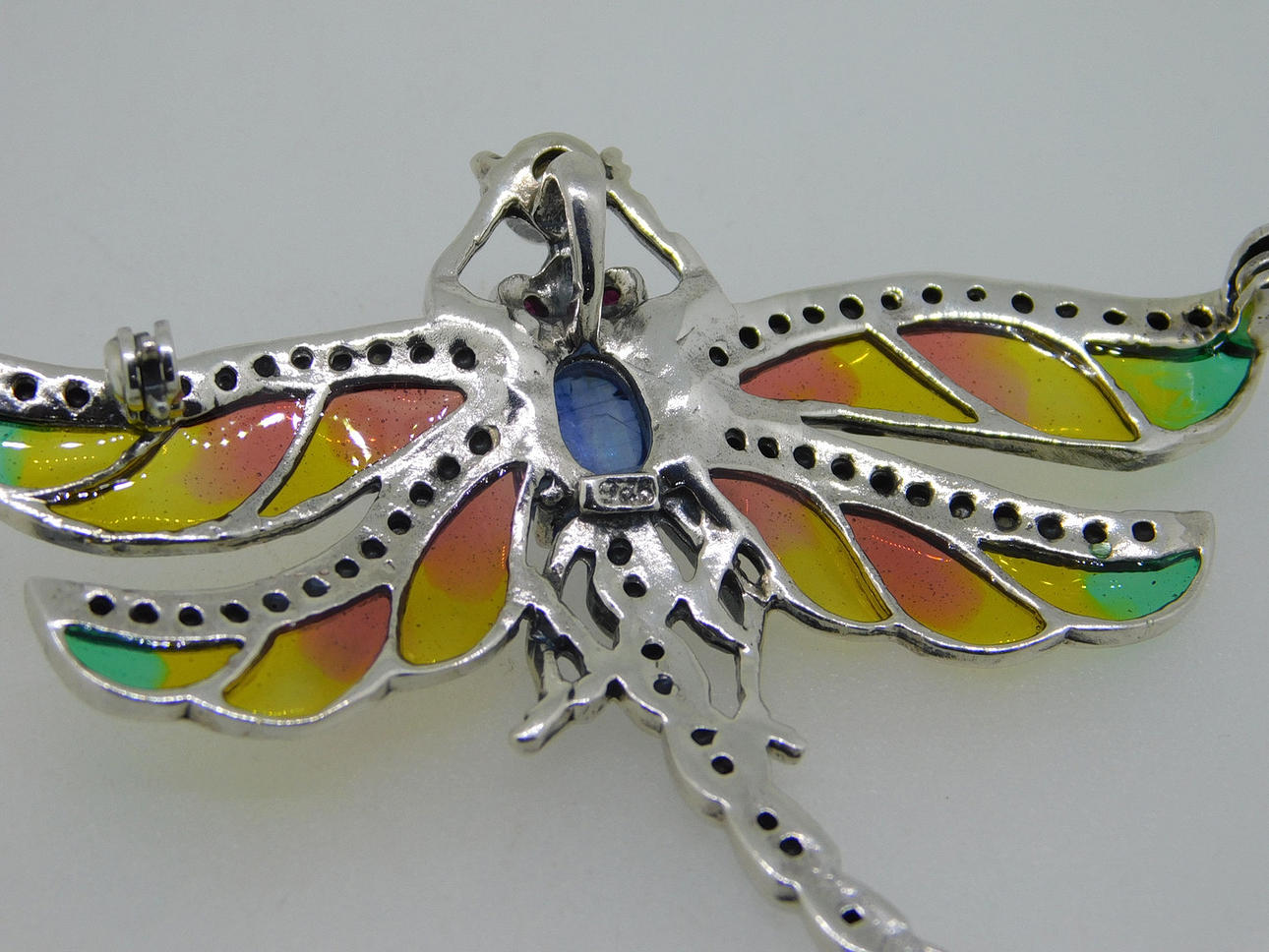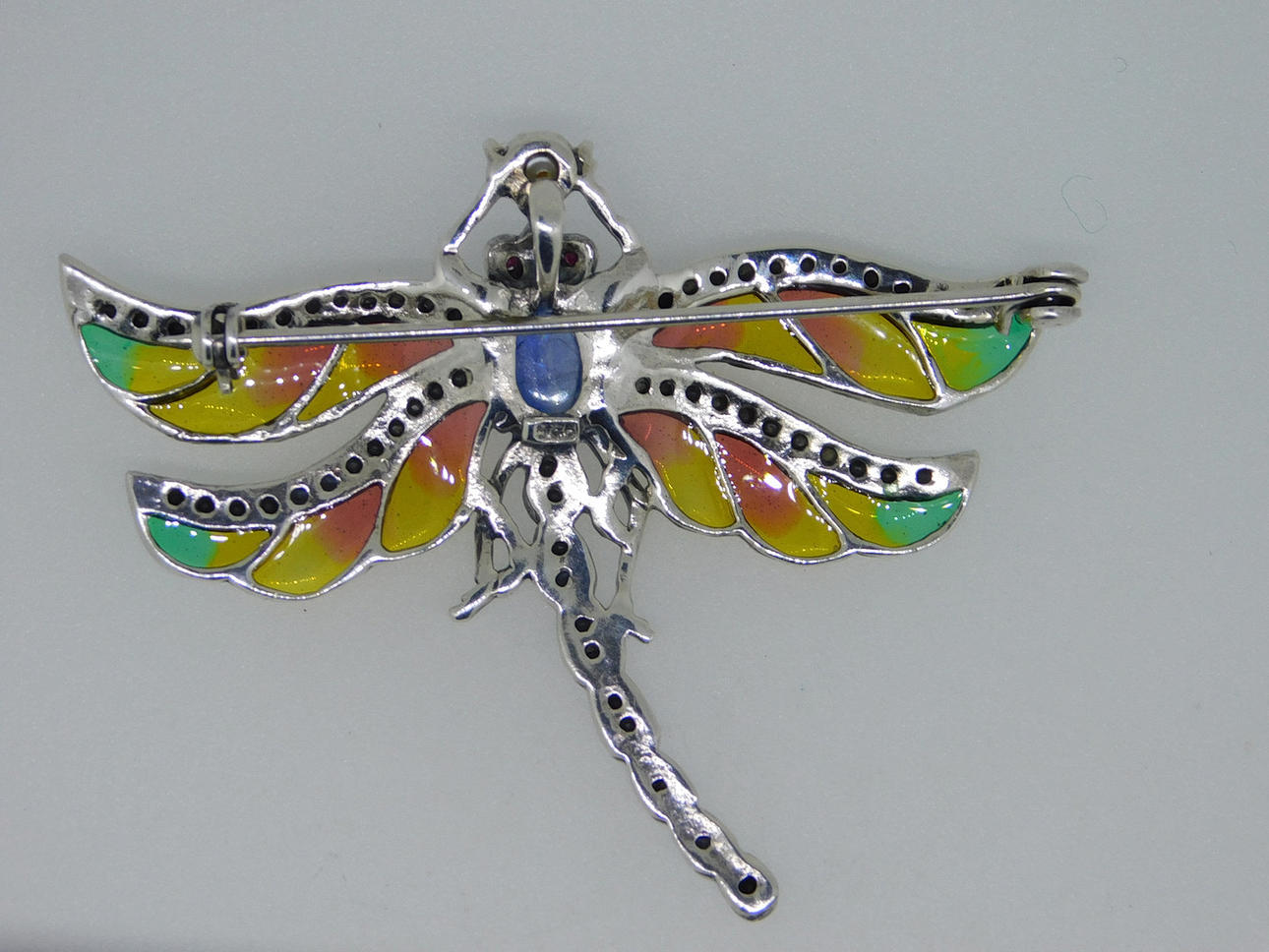 BROSCH/HÄNGE, silver, trollslända, plique-à-jour.