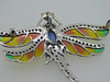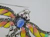 Vingarna och buken i denna brosch är inställda med totalt 59 runda markasit stenar. Dessa vingar är också inställda med gul, rosa och grön emalj inlägg.