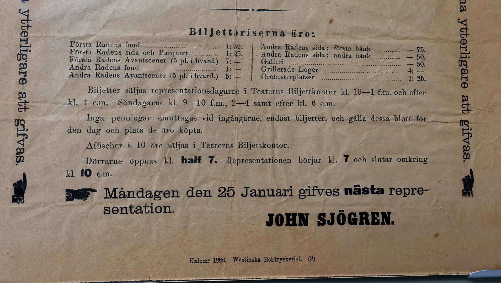 168101. TEATERAFFISCH, 1886, Teatern i kalmar.