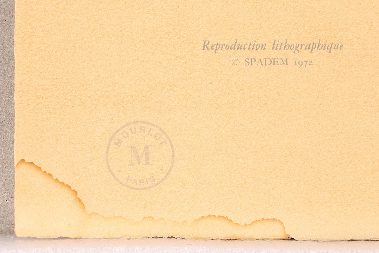 Signerad och daterad i trycket, bladmått 39,5x49,5 cm. Utgiven av Mourlot, Spadem.
