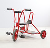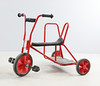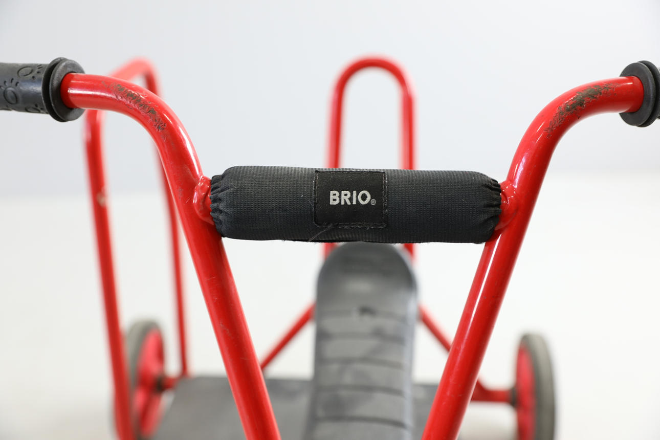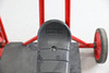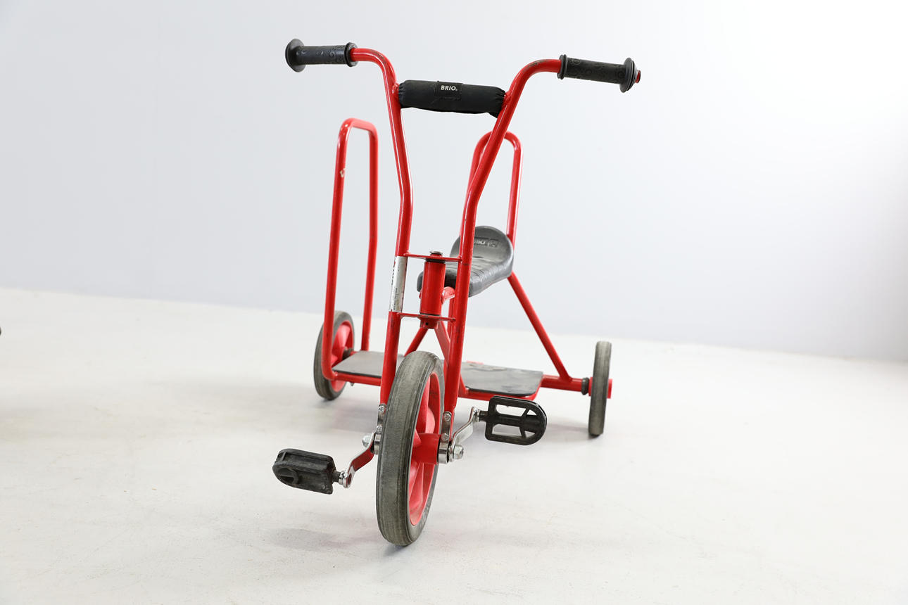 Röd metall med svarta detaljer. Ståplatta bak. Höjd 70 cm Längd ca 65 cm Bredd 62 cm.