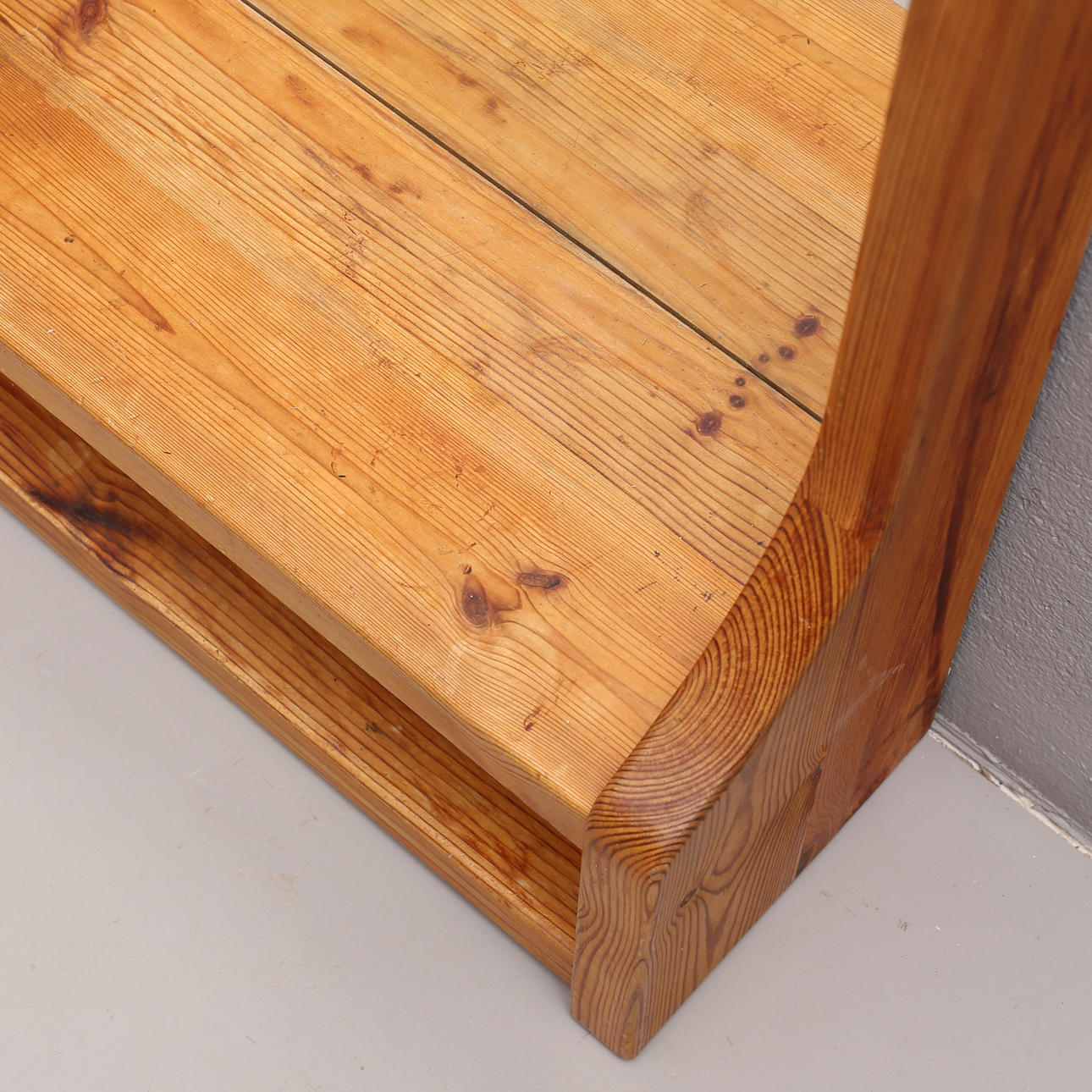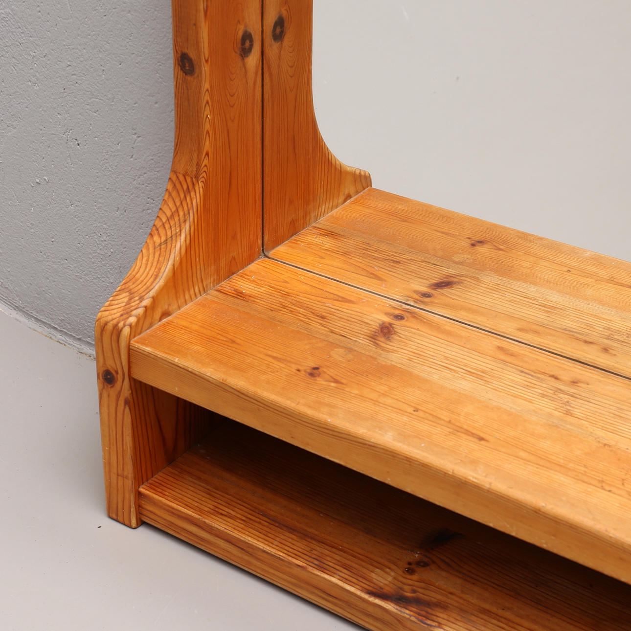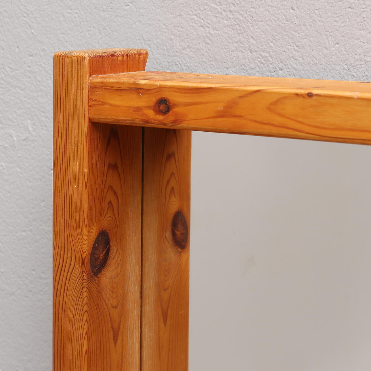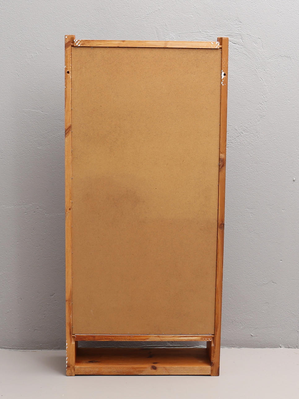 Spegel med träram och hylla. Höjd 144, bredd 65, djup 21 cm.