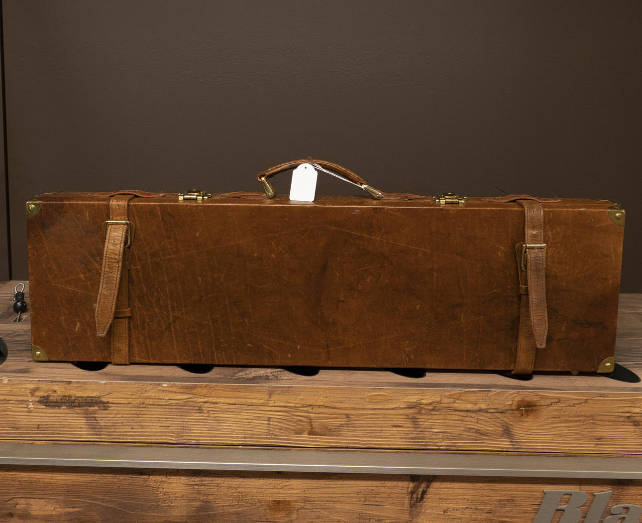 Koffert Svensk för Hagelgevär Läder med "Brass corners" Max piplängd 78cm.