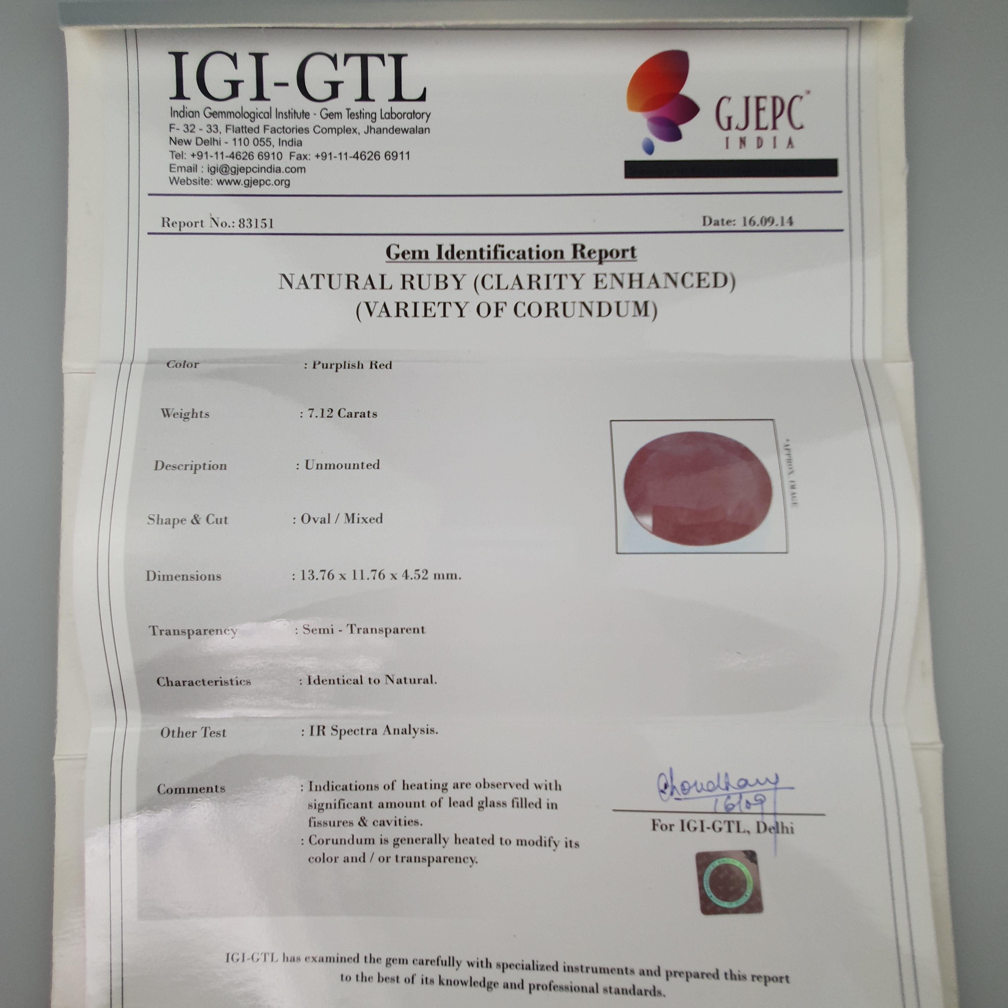 1684181. Oval Ruby Ädelsten.