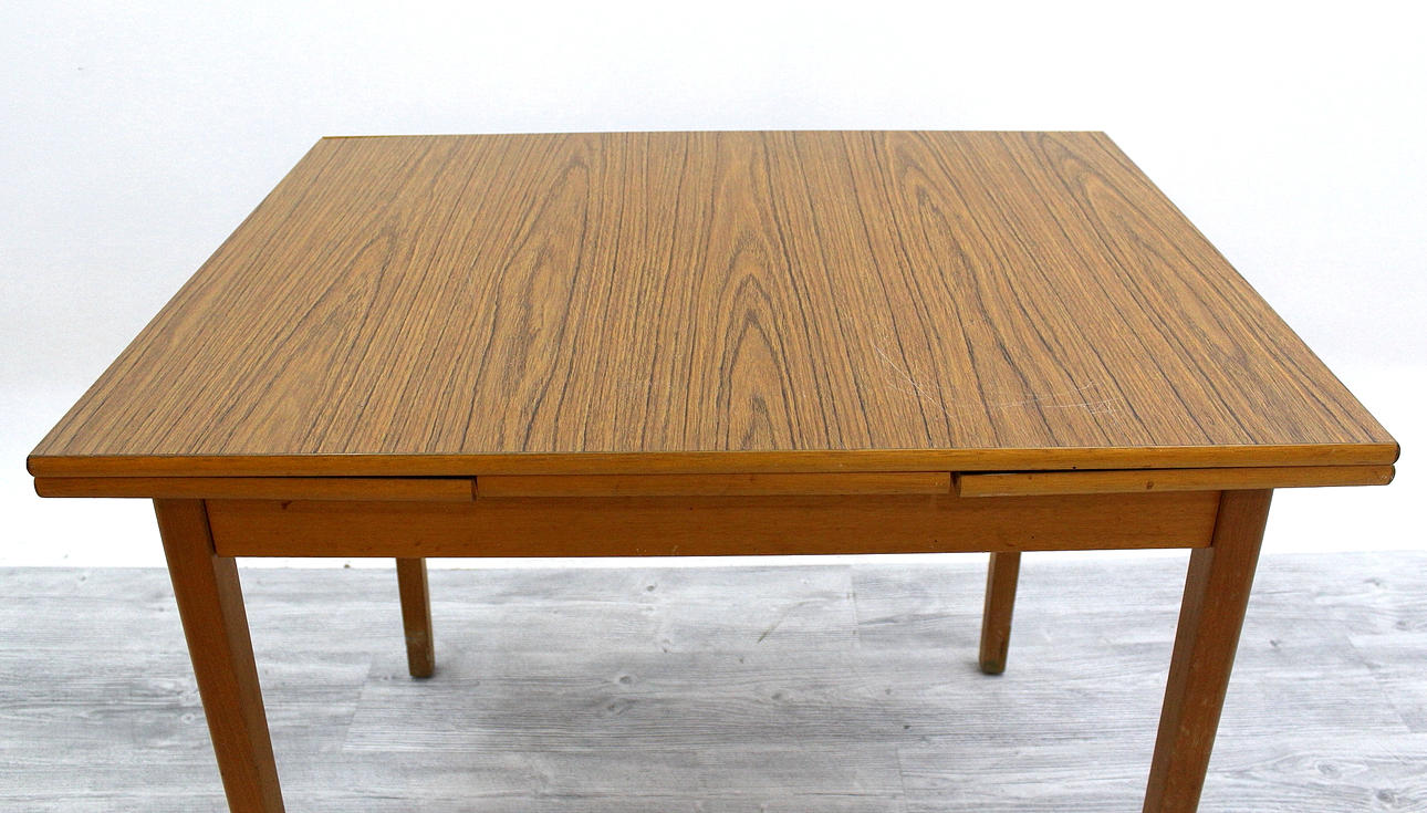 2 st utdragsskivor, ben och ram i Bok. Mått utan extraskivor, Bredd 90, djup 69, höjd 74 cm. Skivorna bygger 2 x 30 cm. Totallängd 150 cm.