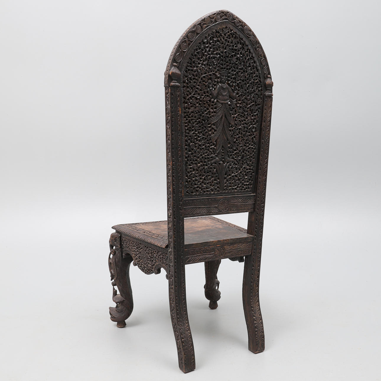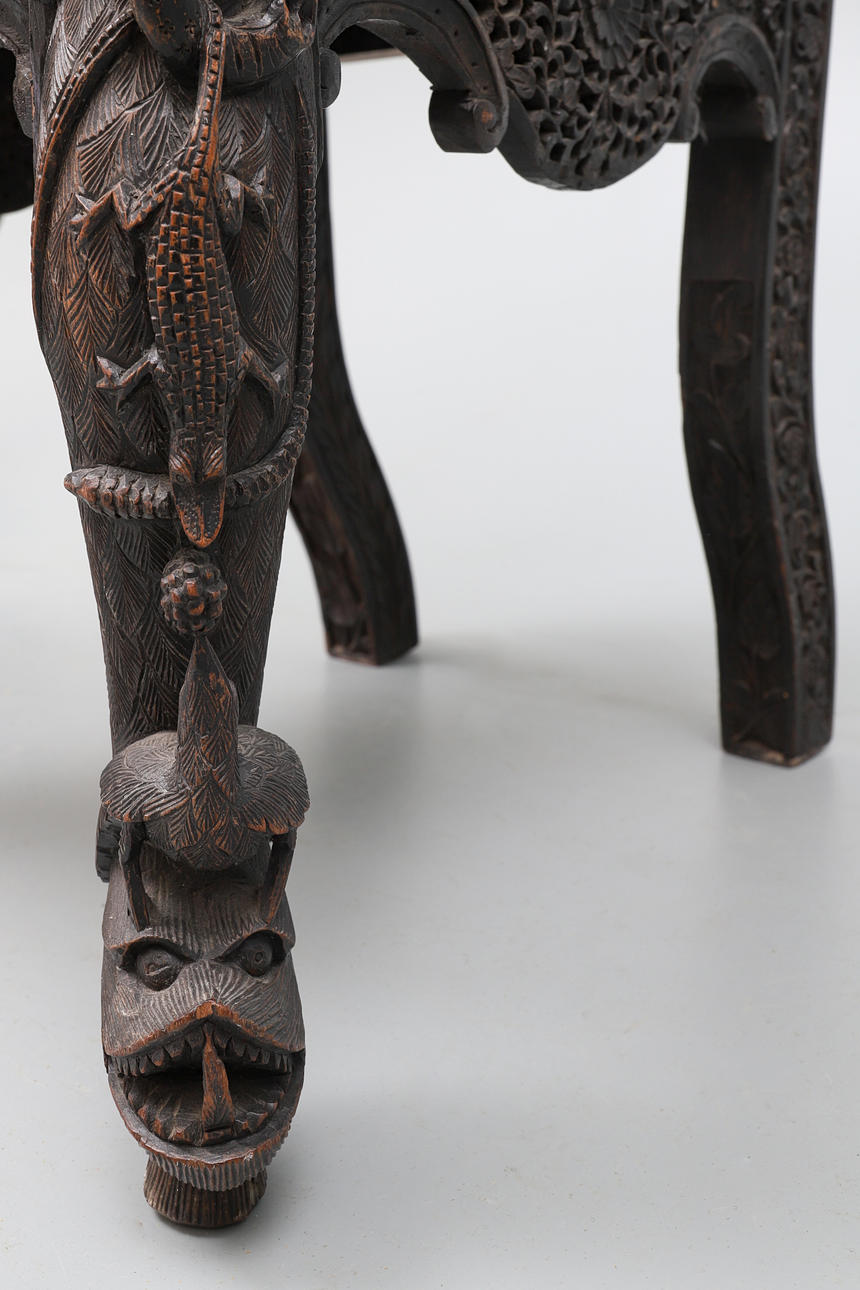 1687288. EN ANGLO INDISKA EBONISED LÖVTRÄ MYCKET SNIDADE SIDOSTOL.