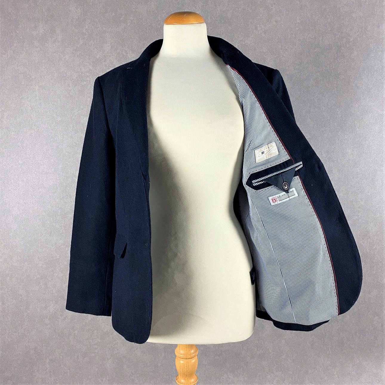 Fint bruksskick. Mindre fläckar på högra armbågslappen (mocka).
