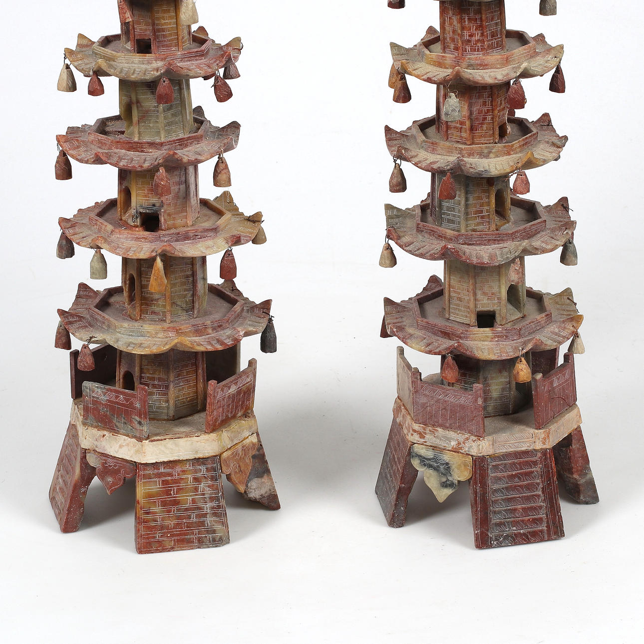 1688566. PAGODER, ett par, soapstone, Kina, 18/1900-tal.