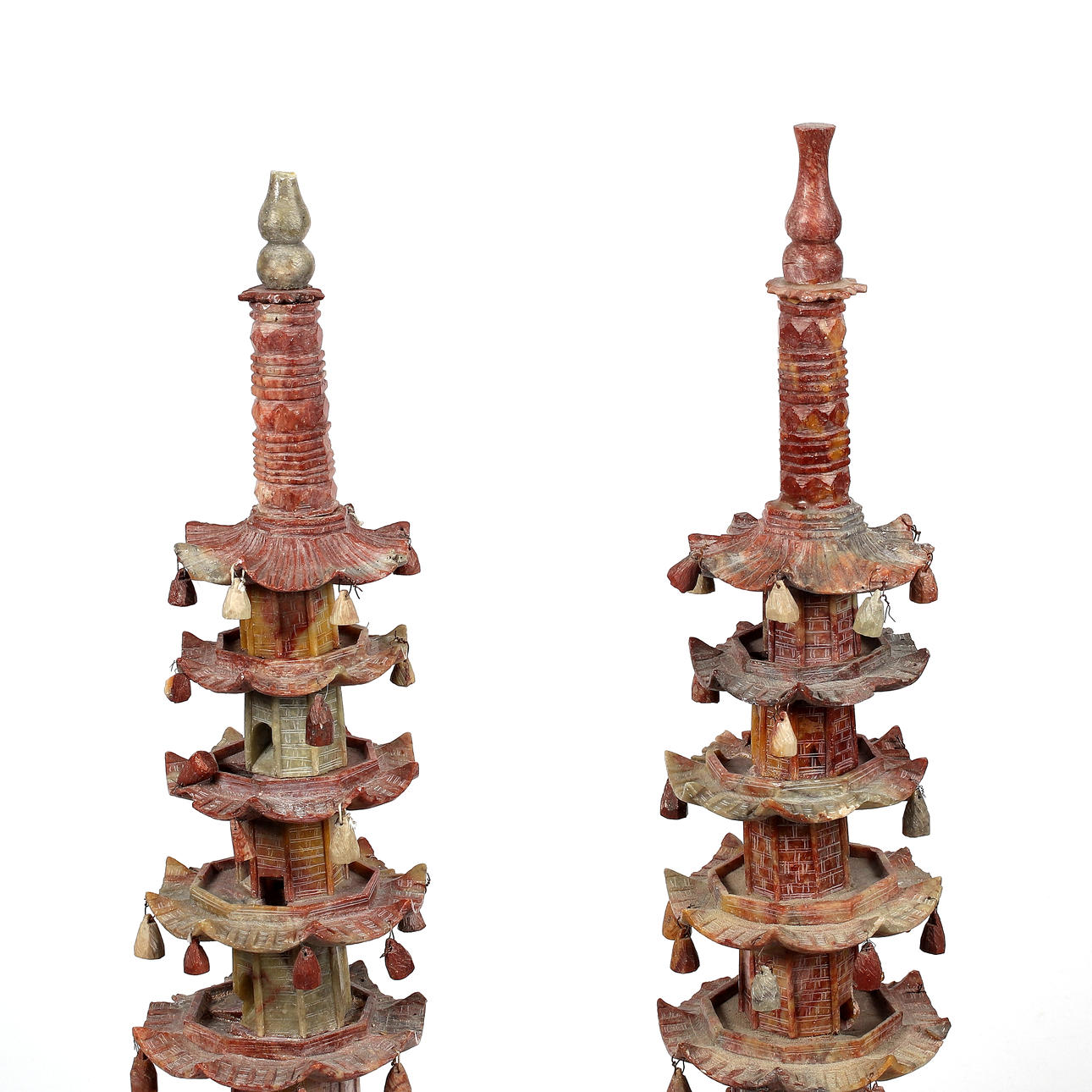 PAGODER, ett par, soapstone, Kina, 18/1900-tal.