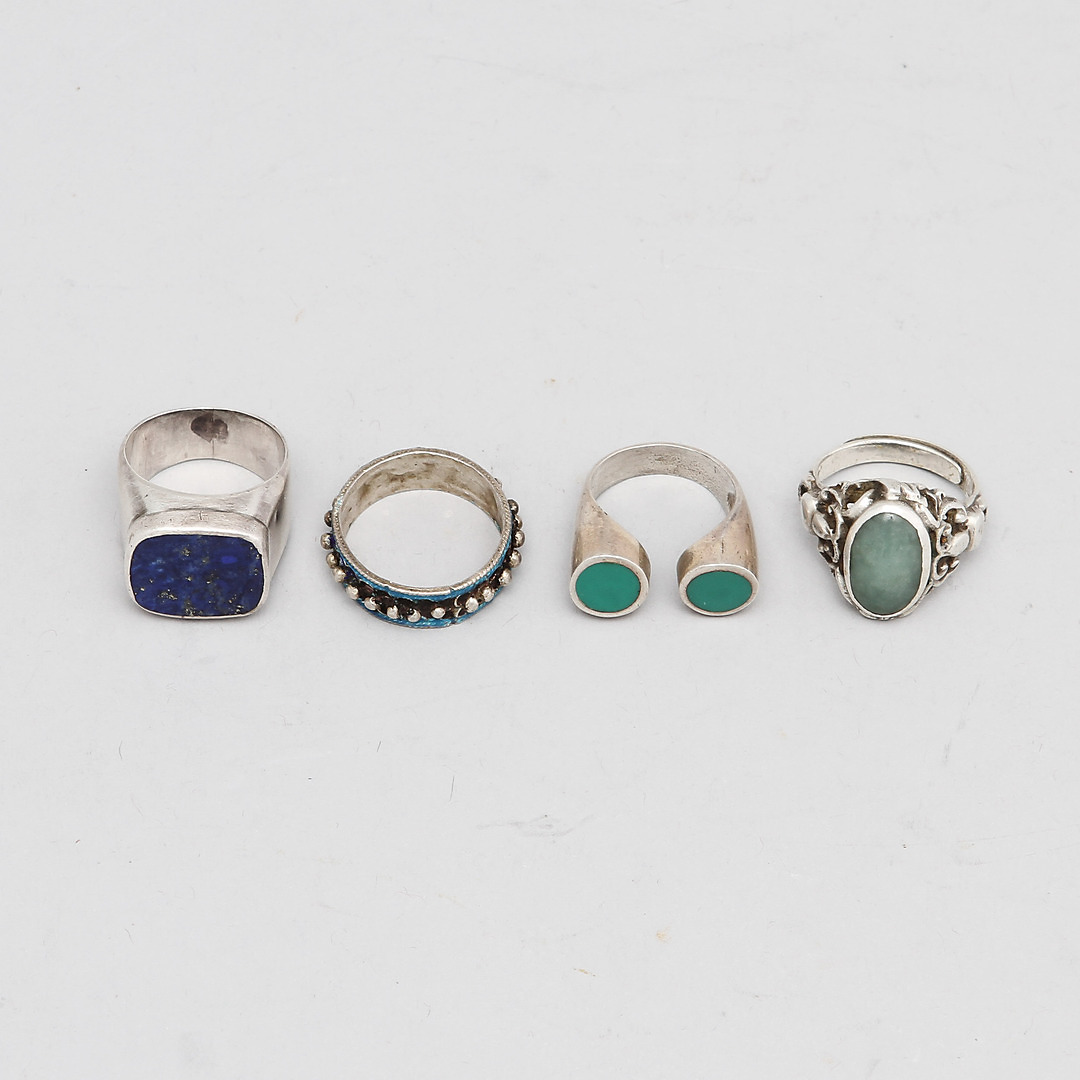 168861. RINGAR, 4 st, silver, bl a orientaliska.