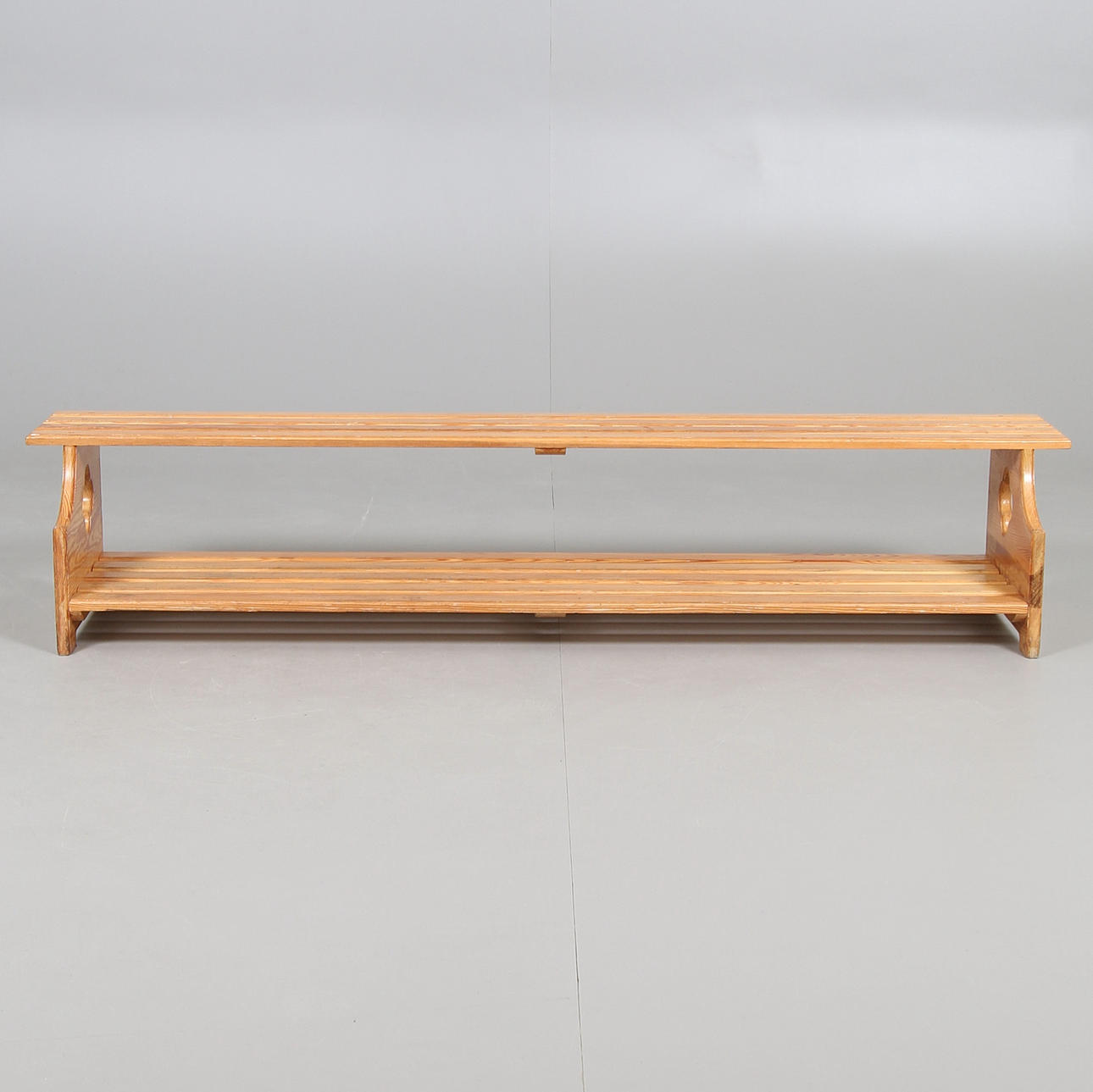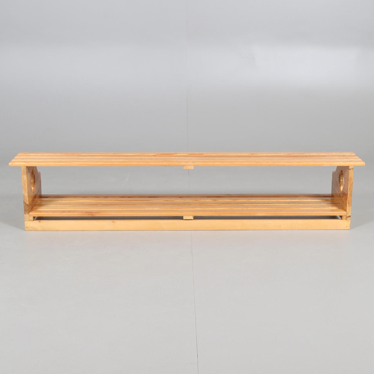 Två hyllor. Längd 140, bredd 30, höjd 27 cm.