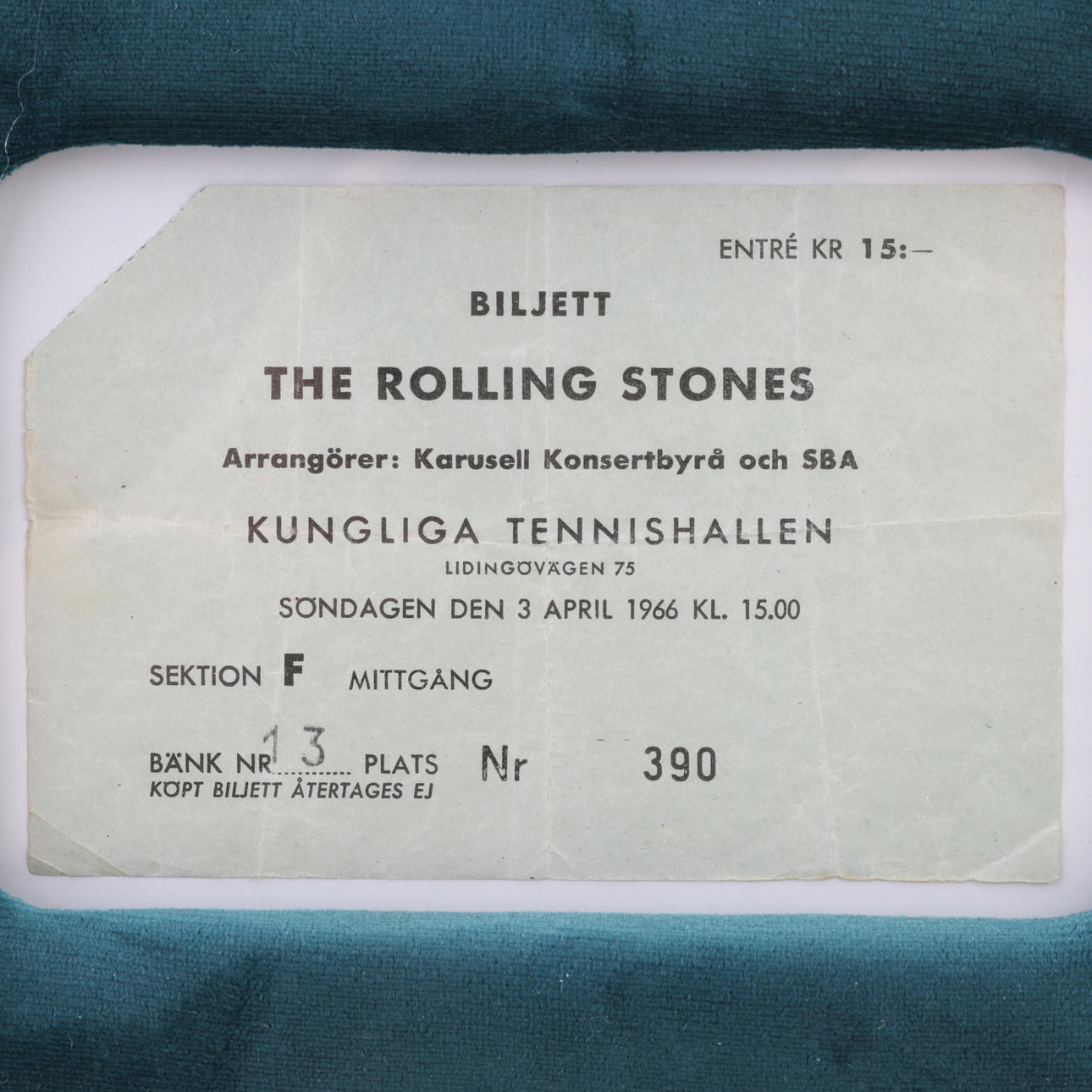 KONSERT BILJETT ,The Rolling Stones,1966.