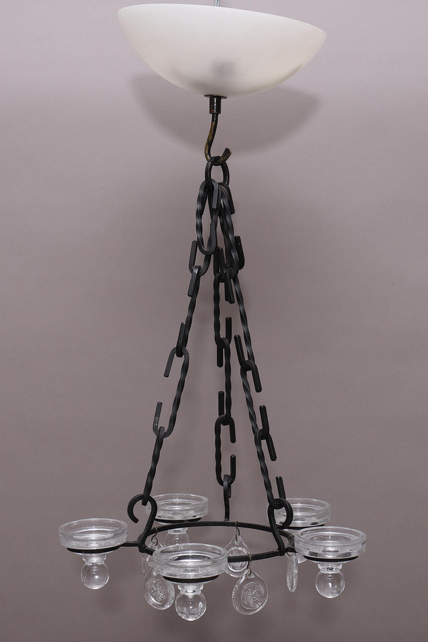 Nagg på glaskupa, inre nagg på 1 st ljushållare, bruksslitage.