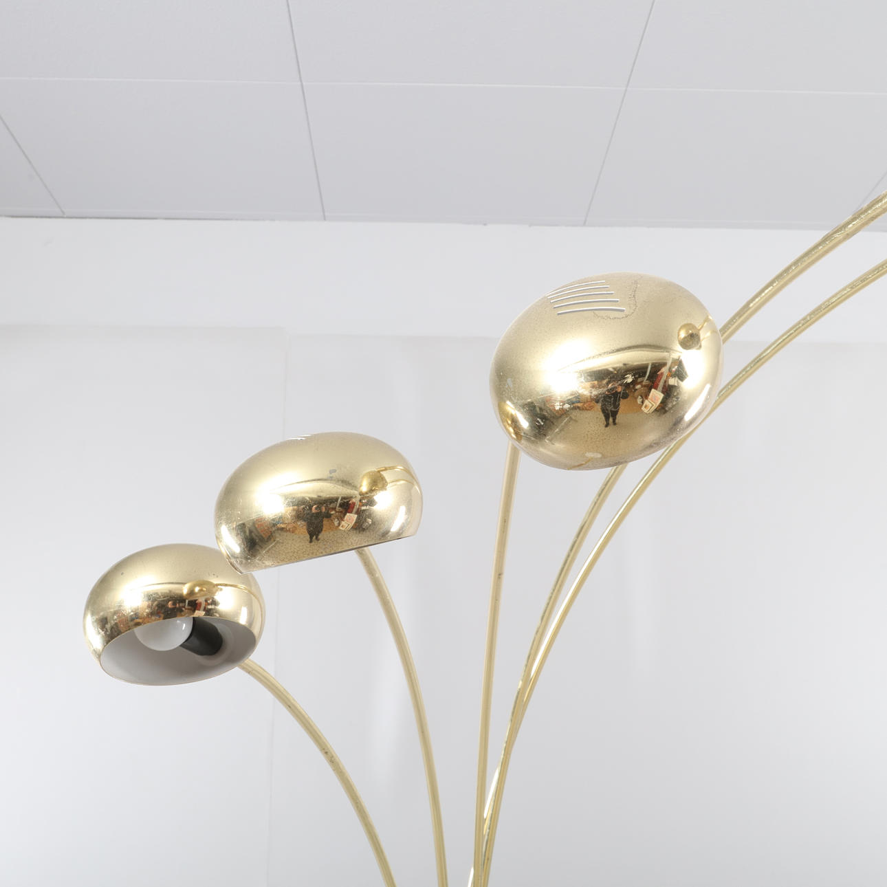 Golvlampa, fem ljusarmar, metall, marmorsockel.
