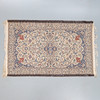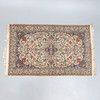 med all-over blommönster runt en central medaljong, på krämmark, 195 x 120cm.