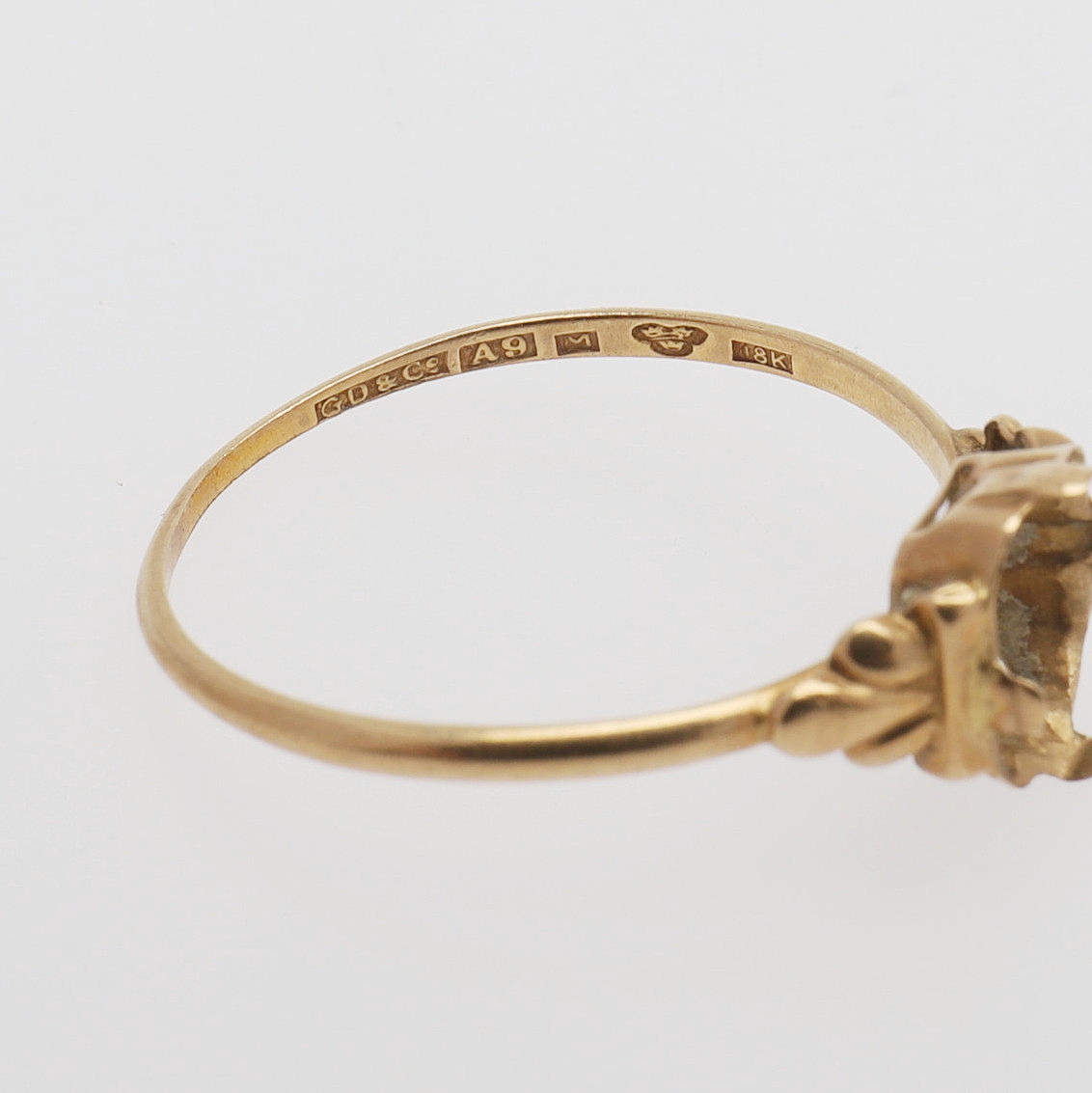 3 st ringar, 18 k guld med skada eller förlorad infattad sten, totalt 6 g.