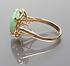 585/000 GG, brutto 3,4 g. Filigran inställningsset med äppelgrön kupolformad jade cabochon,