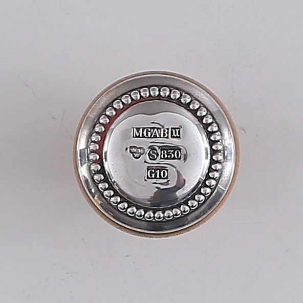 1703044. VÄXELSPAKSKNOPP, silver/trä, 1981.