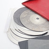 Flera olika slipskivor och smärgelpapper medföljer.