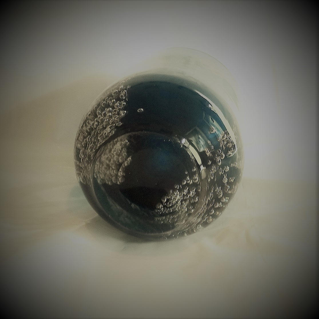 Cirka 24 cm hög, 11 cm diameter i mitten, 3,5 cm upptill.