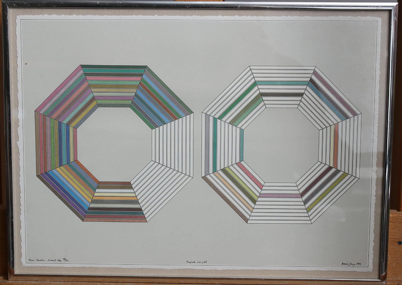 HOLGER BÄCKSTRÖM OCH BO LJUNGBERG. Computer ink plot, , 2 stycken, numrerade, signerade Beck o Jung, daterade 1983.