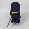 Rock, sockar, stövlar, byxor, underlinne, sköld, bröstplåt, kappor, peruk samt hatt, handskar, guljehäng.