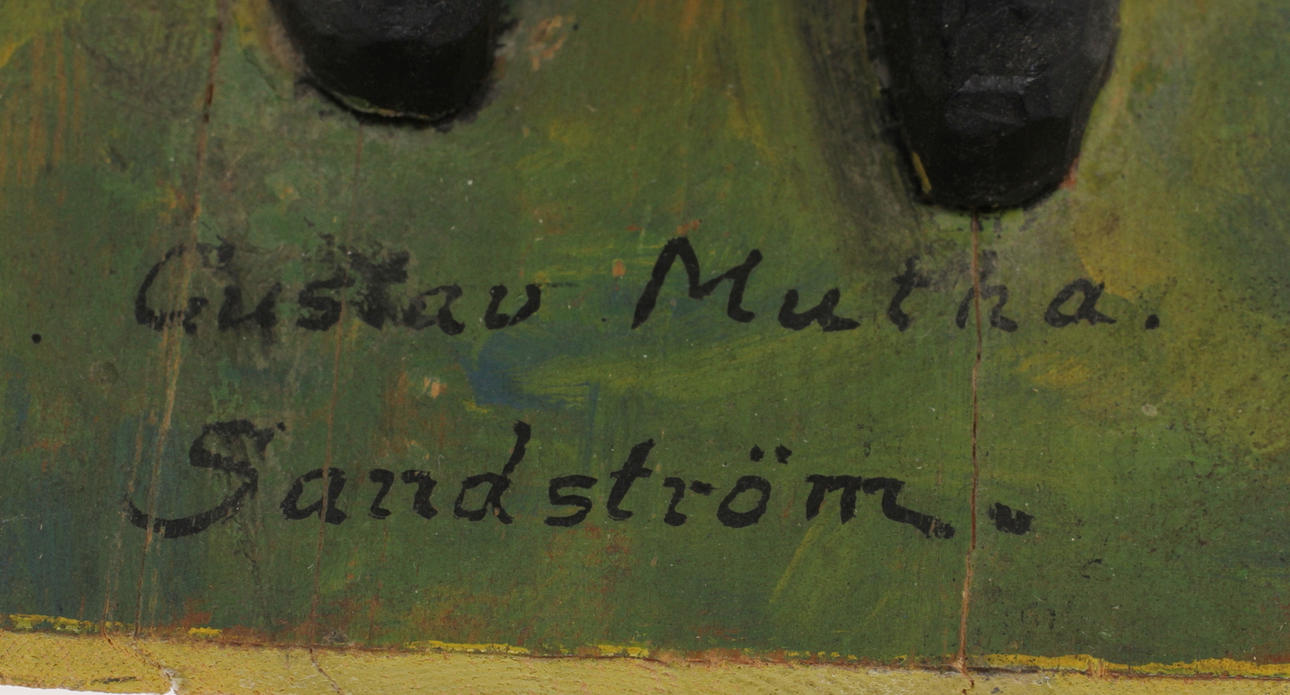 Bär påskrift " Gustav Mutha. Sandström". Höjd 35 cm.